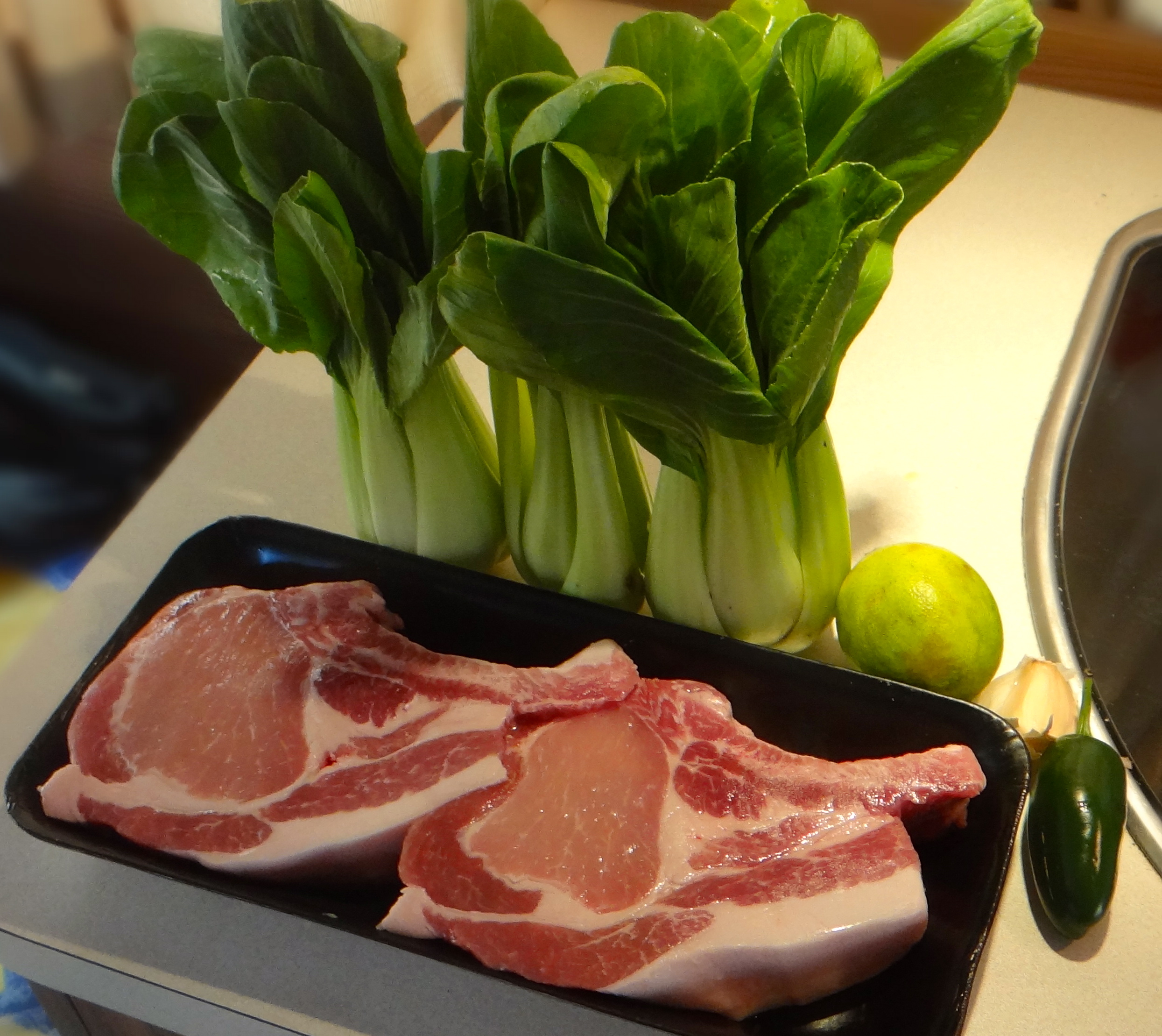 Something else I prepared was pork chops and baby bok choy with jalapeno and garlic.
