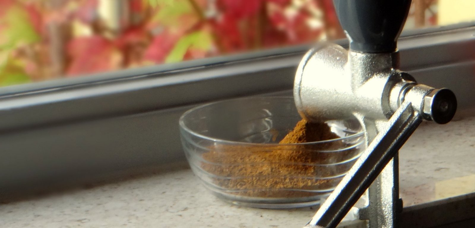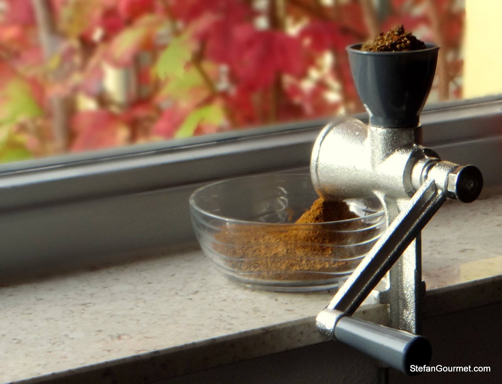 Nice job! I like your hand cranked spice grinder. I use a cheap electric coffee grinder for mine… it, too, does not work well with most dried chilies tho…