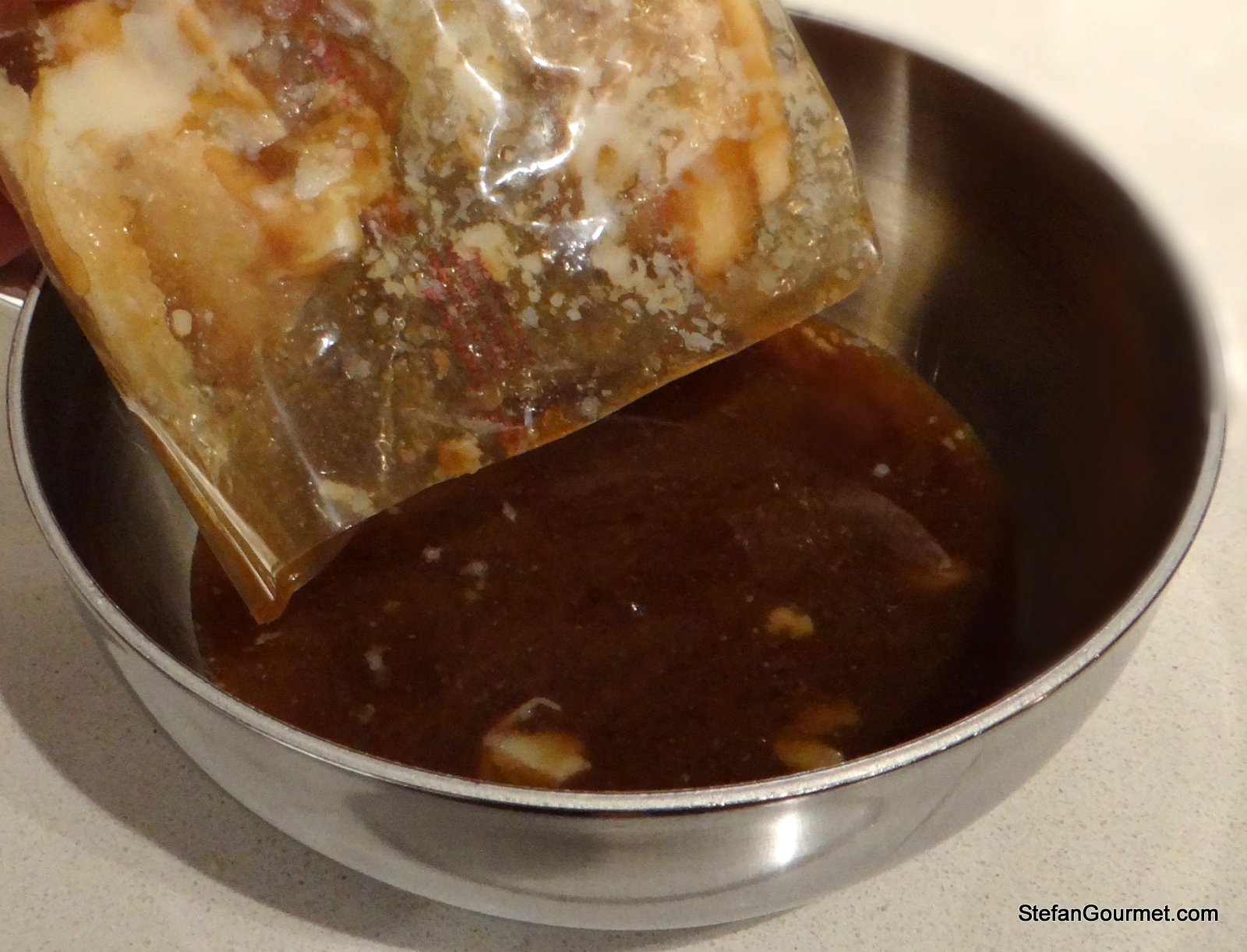 The verdict? The meat was not as juicy as at 60ºC/140ºF, but still juicy enough, and I think I may like the fatty layer better this way. This is certainly a good option if you are pressed for time and don’t have time to wait for 36 or more hours. The bigger succes was the Asian style sauce and the combination with the broccoli. Here’s what I did…