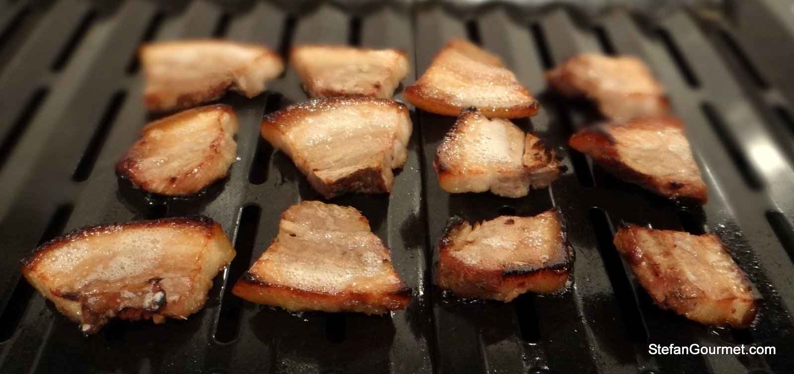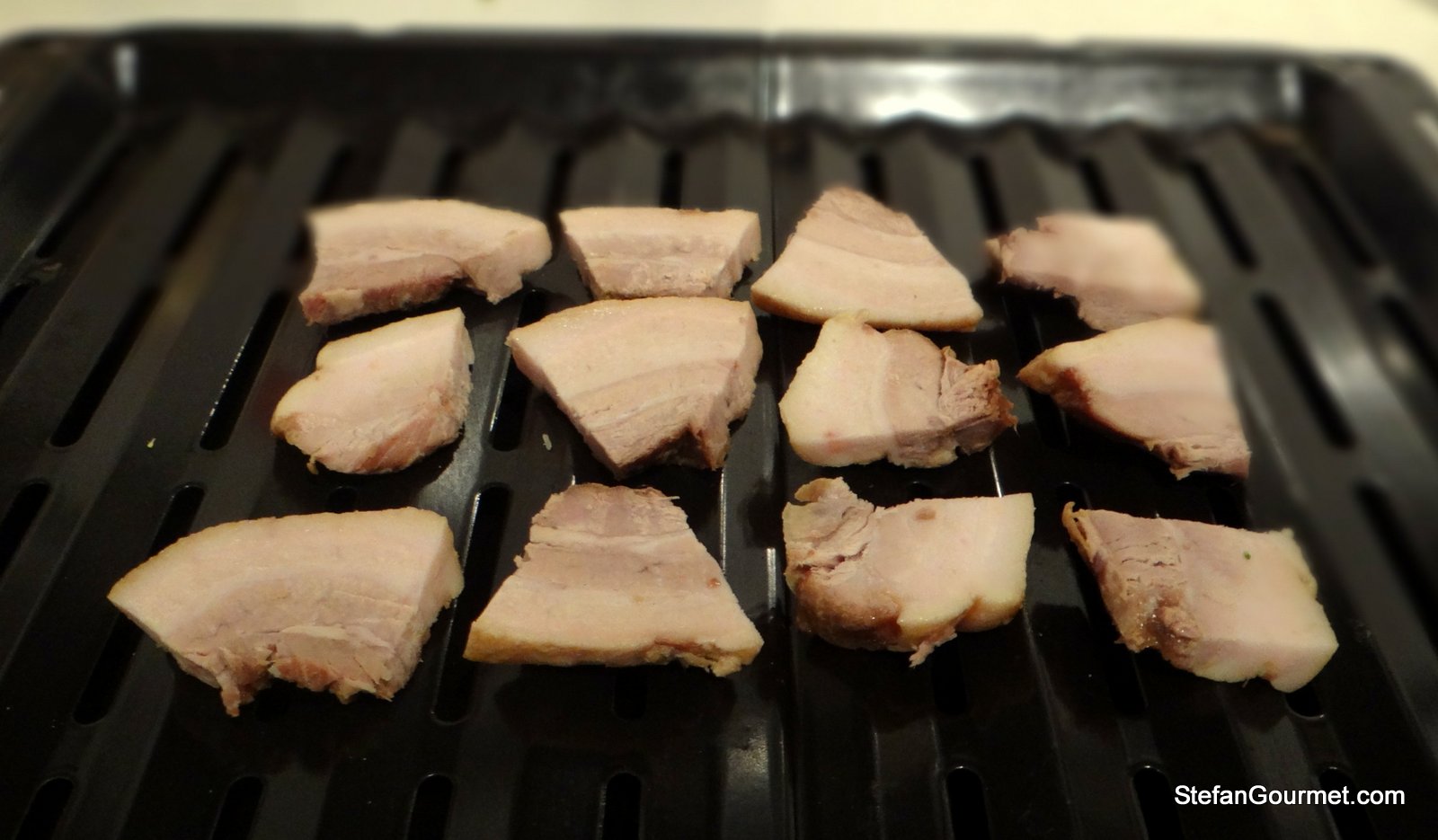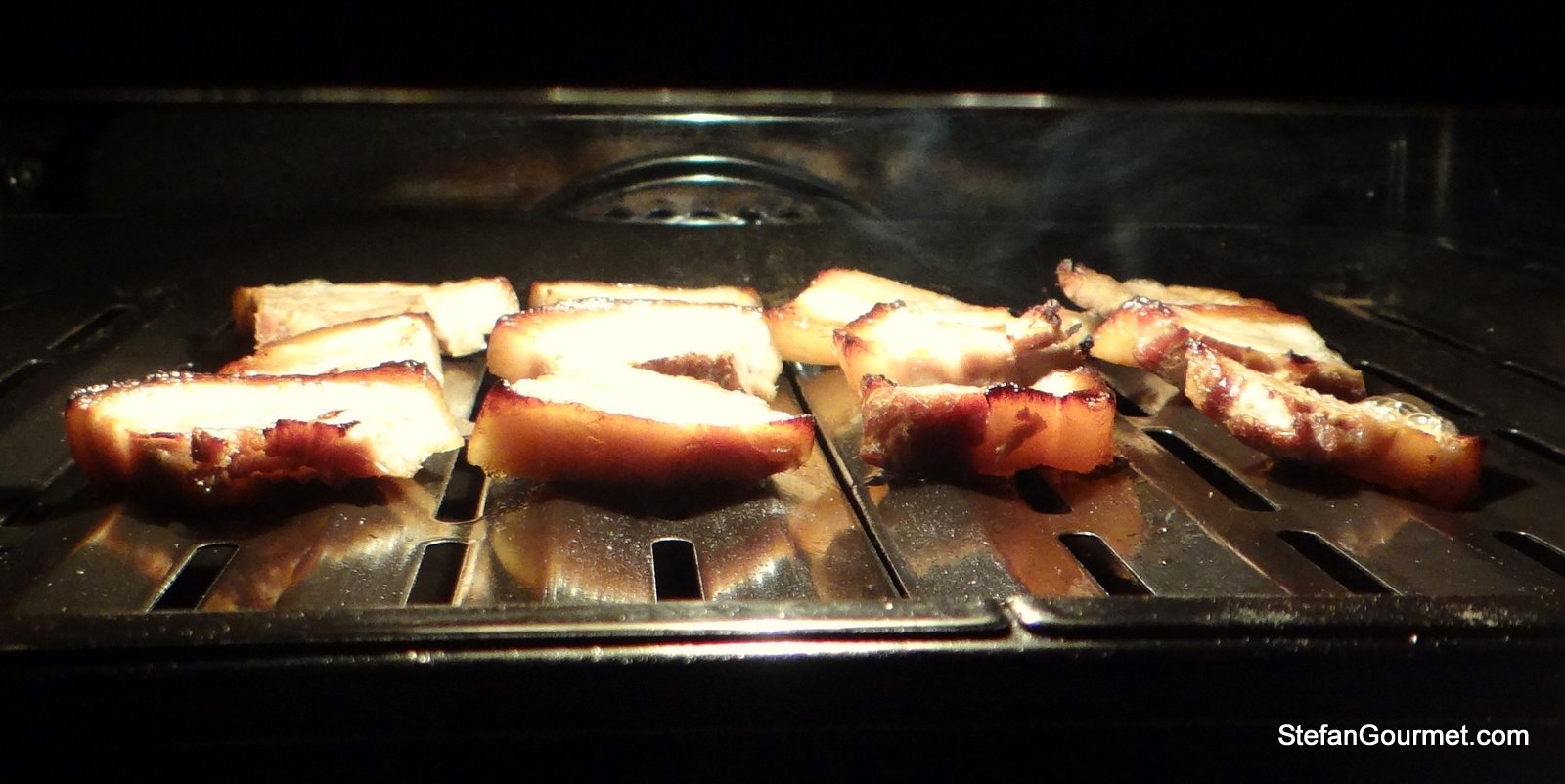 Preheat the broiler and arrange the pork belly on a broiler pan.