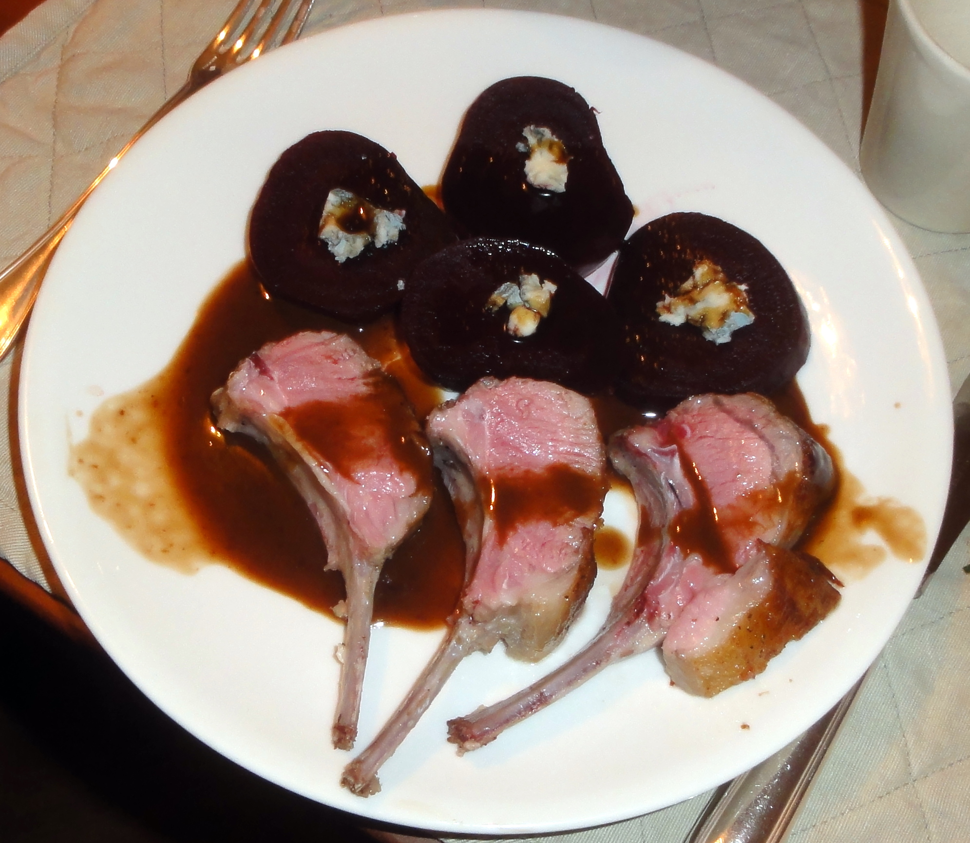 Two years ago on December 1 I posted about sous-vide rack of lamb. Again the photography leaves a lot to be desired, but you can see very well how beautifully pink the lamb was. Rack of lamb is one of my favorite meats, and cooked sous-vide it is always perfectly medium rare right to the very edge of the meat without any overcooked meat.