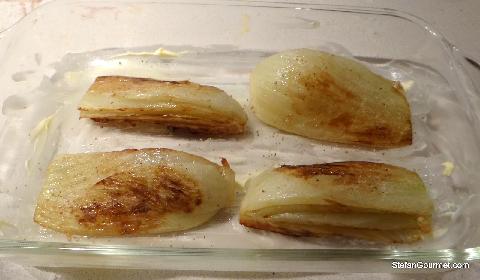 Brown the fennel in (clarified) butter over high heat on all sides.