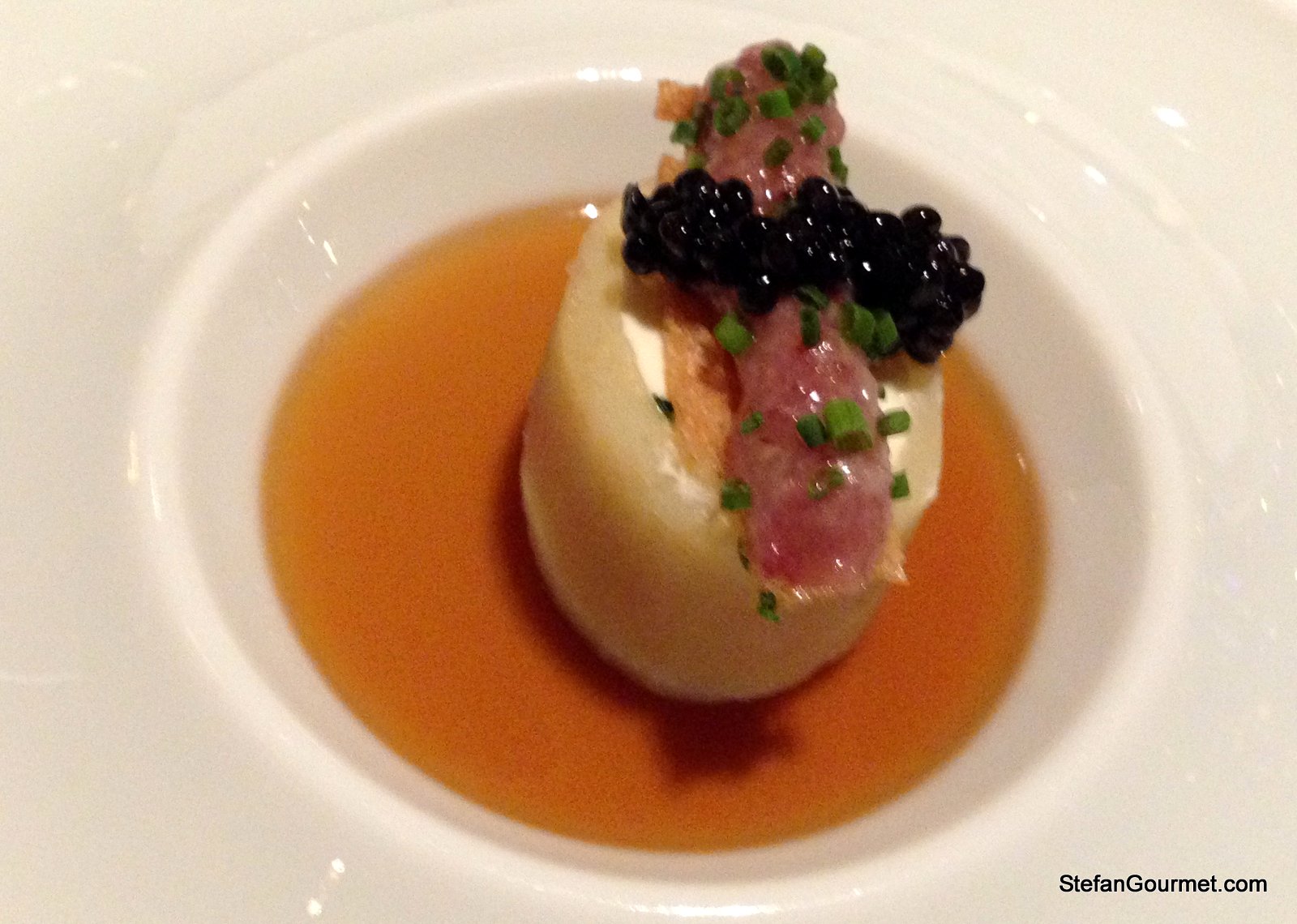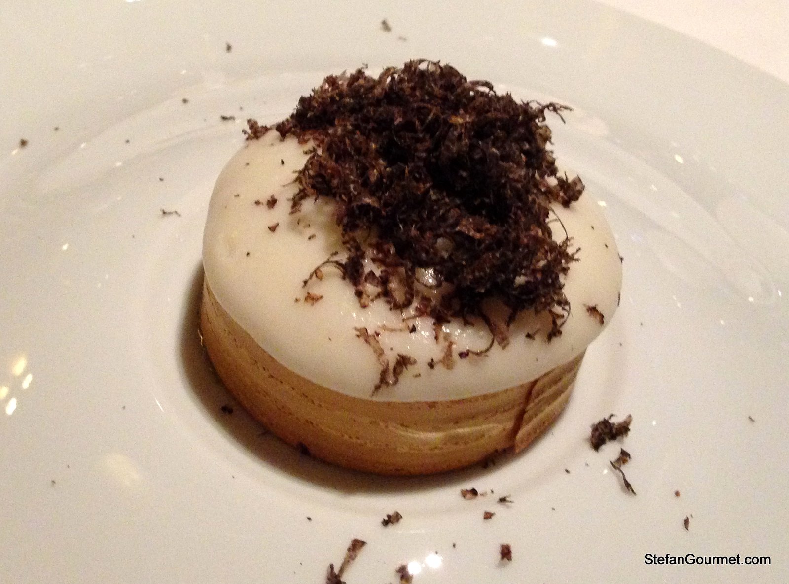 2. Stefan: What delicacy. OH MY! 🙂 The first course of the menu, the jerusalem artichoke foam with raw sea scallop from Brittany with black truffle, looks amazing! Very clean, indeed. I wish I could have tasted that. I adore the earthy flavor of truffles. Best, Shanna