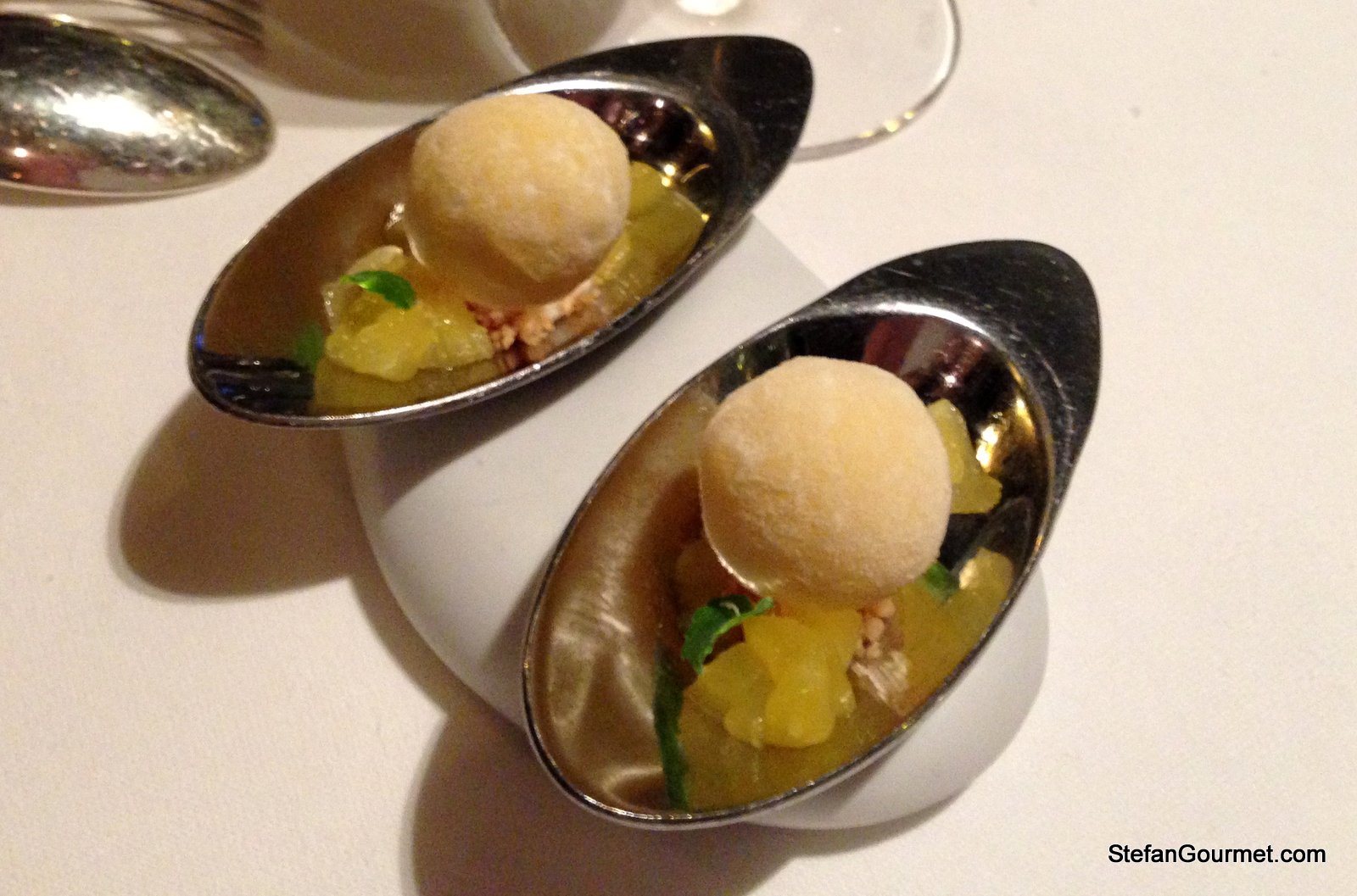 The second amuse looked familiar, but it was slightly different as it was stuffed with crab rather than Dutch lobster (which is out of season). Very crunchy on the outside and very tasty.