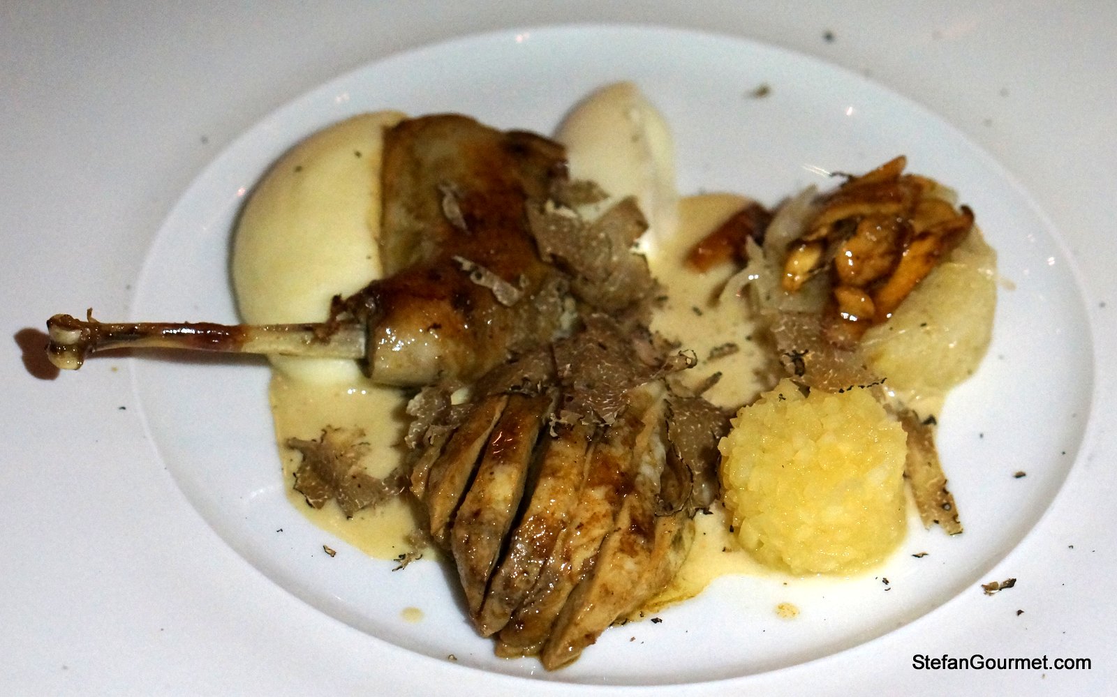 The red-legged partridge came with shaved truffle, sauerkraut, apple, and porcini mushrooms, a very classic dish. The 2006 ‘Schieferterrassen’ riesling (from a slate terror in Mosel) was very nice and worked quite well with the apple and sauerkraut, a bit less with the partridge. The partridge breast was tender and juicy, but the leg was tough and dry. This shouldn’t happen in any restaurant, and certainly not with two Michelin stars. Since it was a big portion for only the third course out of seven, we didn’t send it back and enjoyed the breast instead. 6/10