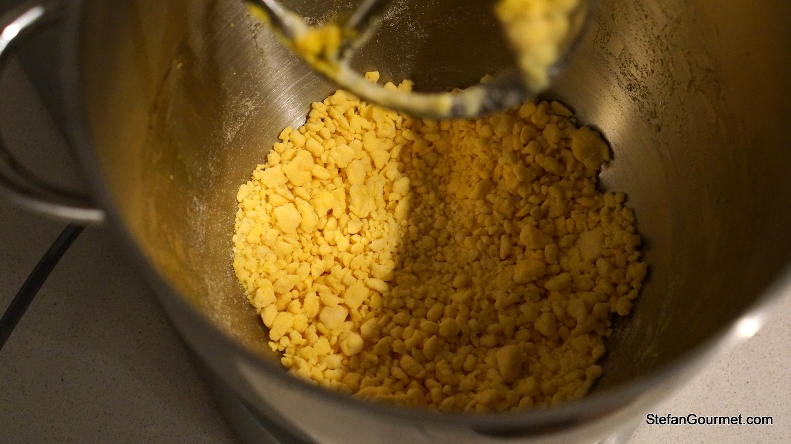 Now very slowly add some more water, just enough to make the dough come together, not more. I added 15 ml (1 Tbsp).