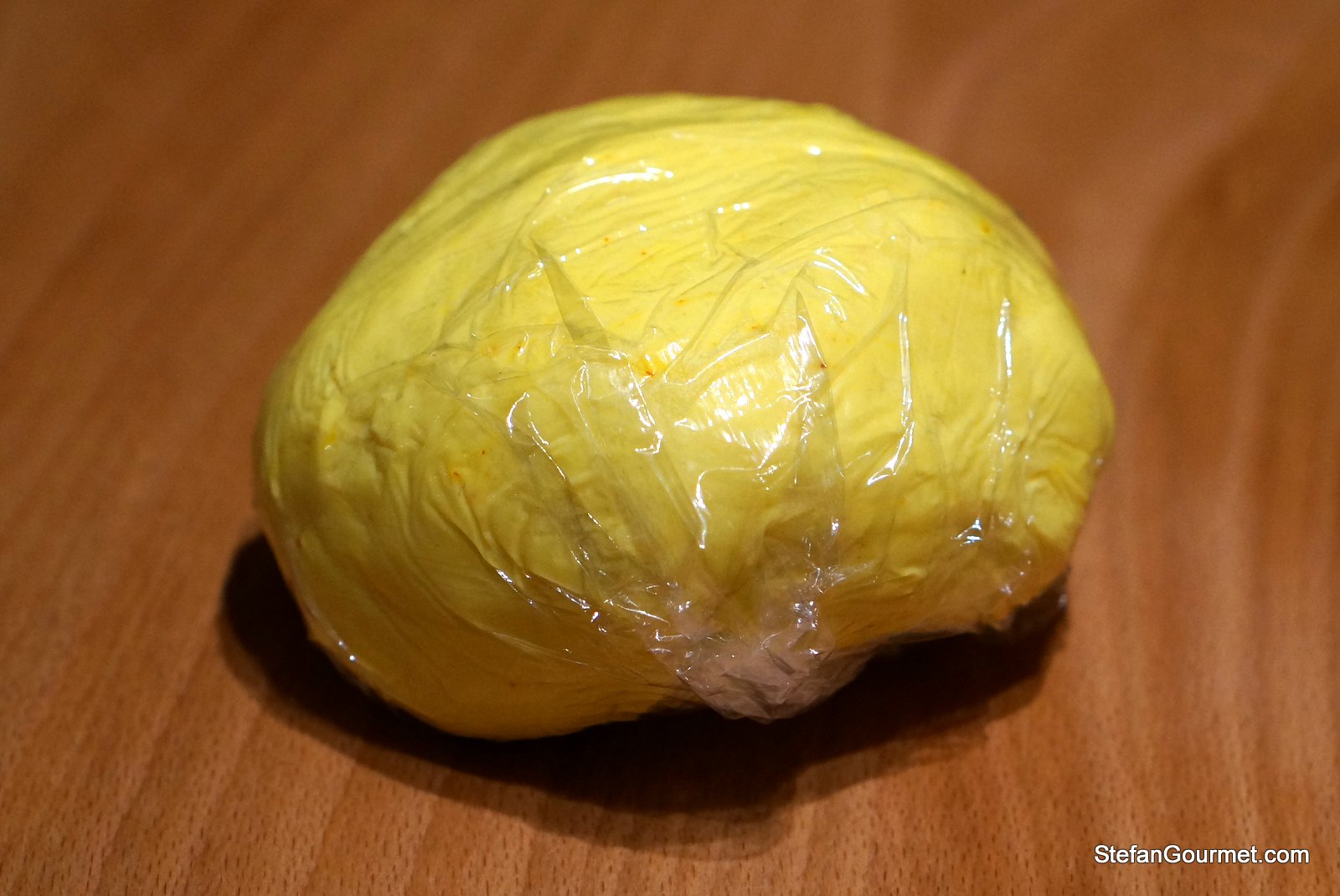Wrap the dough in plastic wrap and allow it to rest at room temperature for half an hour.