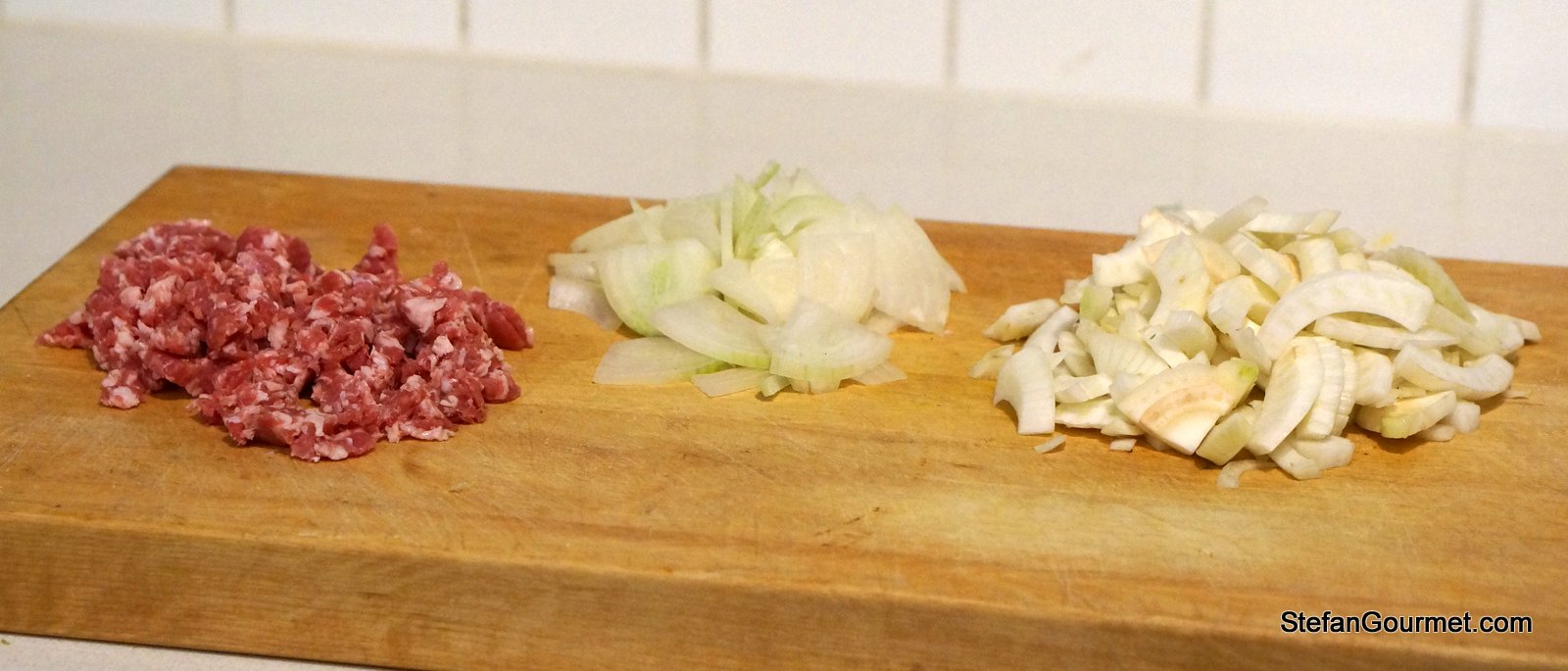 I also found out that malloreddus are most famously served alla campidanese, which means with a tomato sauce with Sardinian pork sausage and saffron. Owen suggested a sauce of fennel and sausage, and since this was his idea in the first place I decided to stick with that for my first experiment. I did simplify Owen’s recipe for the sauce slightly, more in line with how I think an Italian would prepare it. The sauce was amazingly flavorful and it would also be great on another type of short pasta or on store-bought gnocchetti sardi by DeCecco. So even if you are not going to make your own malloreddus, I urge you to try the sauce!