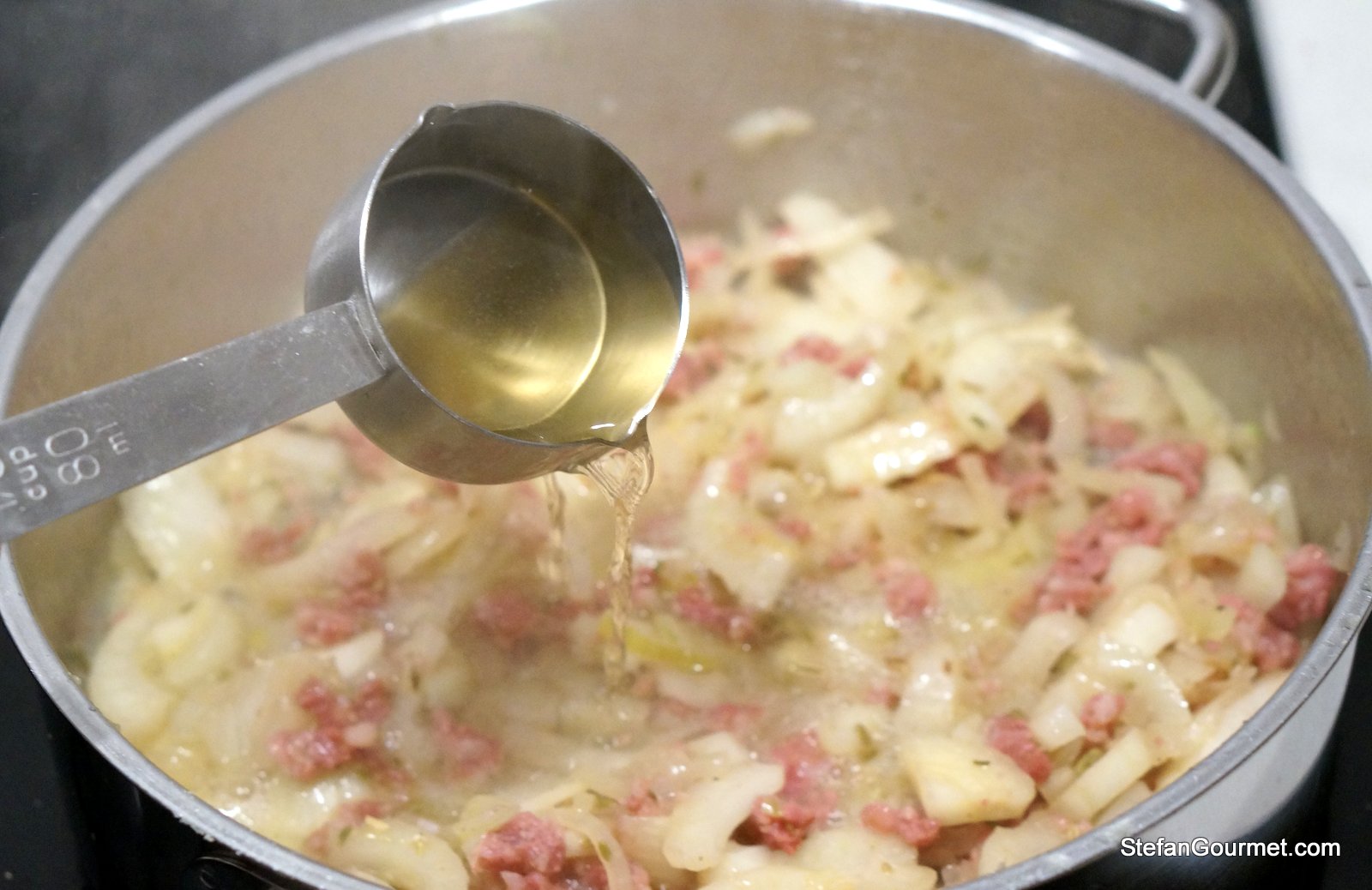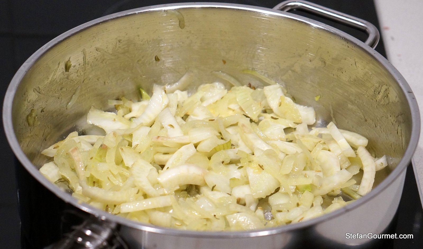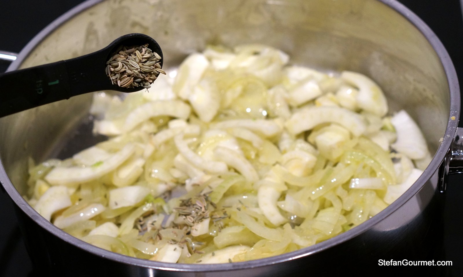 I have a fennel bulb in the fridge, so will try the sauce. But when do you add the fennel? With the onion or with the white wine? I read it over several times, but I couldn’t spot this info… thanks!