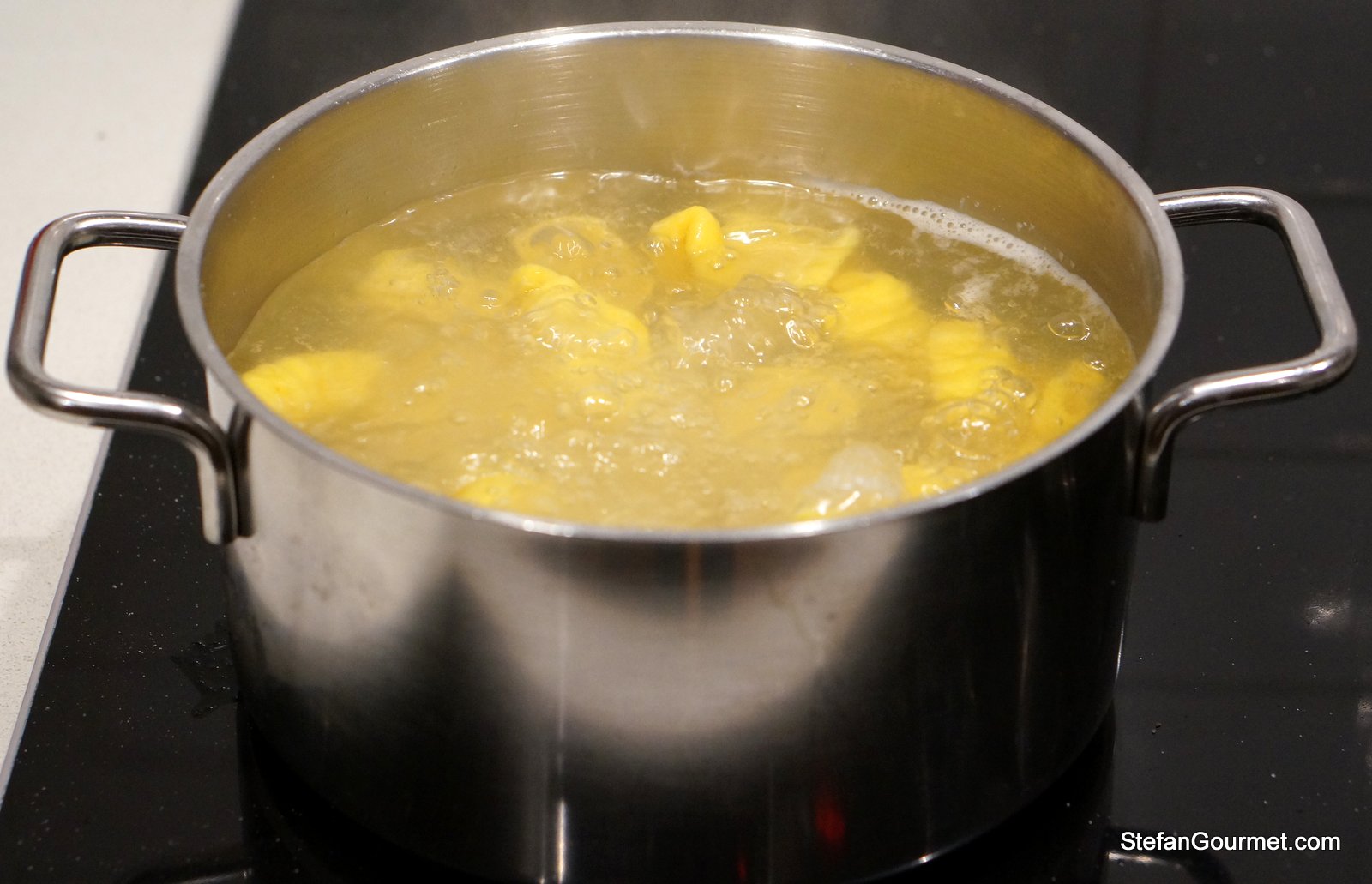 Meanwhile, bring a pot of water to a boil and add salt and the malloreddus.