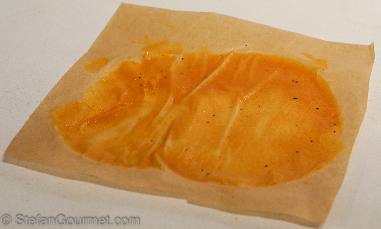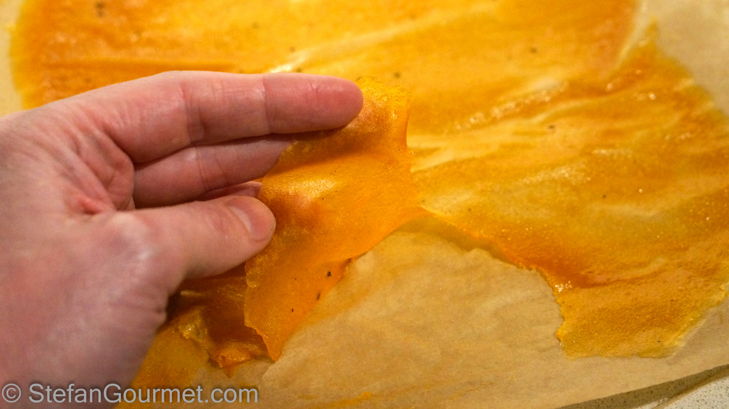 The passion fruit leather has a strong flavor and interesting texture that I would indeed describe as leathery.