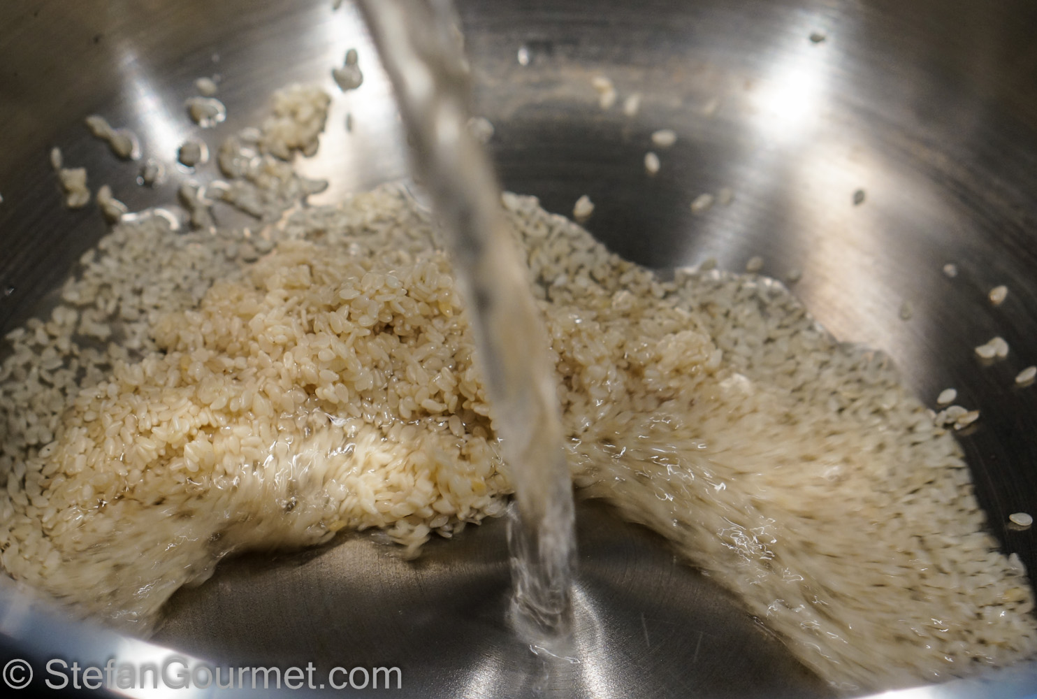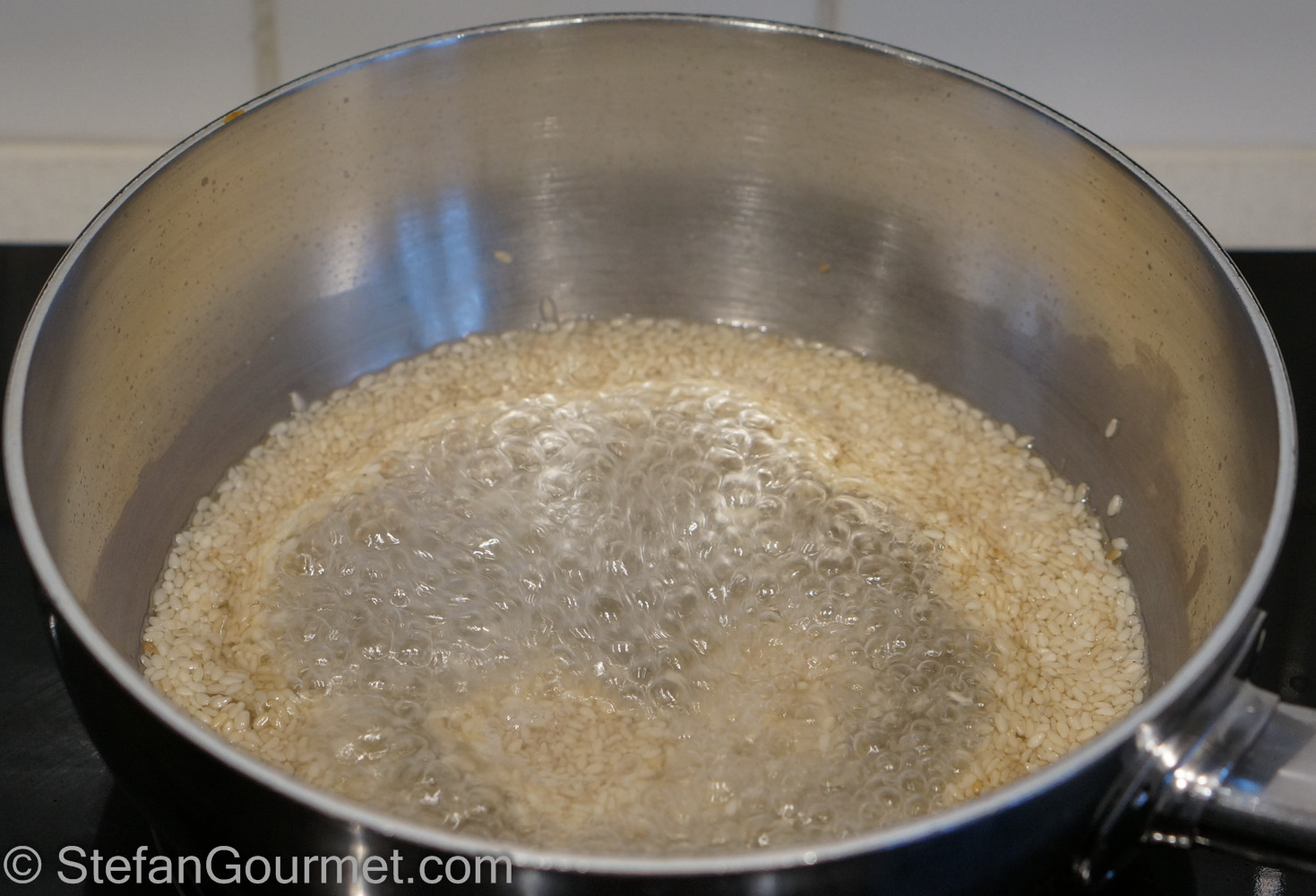 Boil for  2 minutes to remove bitterness. (This is what Modernist Cuisine says. I thought the seeds were still a bit bitter.)