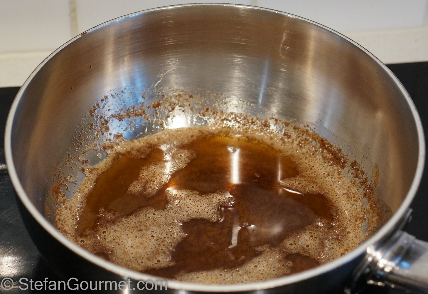 Modernist Cuisine has a fancy way of making brown butter using a pressure cooker and adding milk powder. We decided to allow ourselves a shortcut (also because milk powder is surprisingly hard to find in a country that produces something like 100,000 metric tonnes of the stuff). And so we just cooked butter over low heat until it was brown.