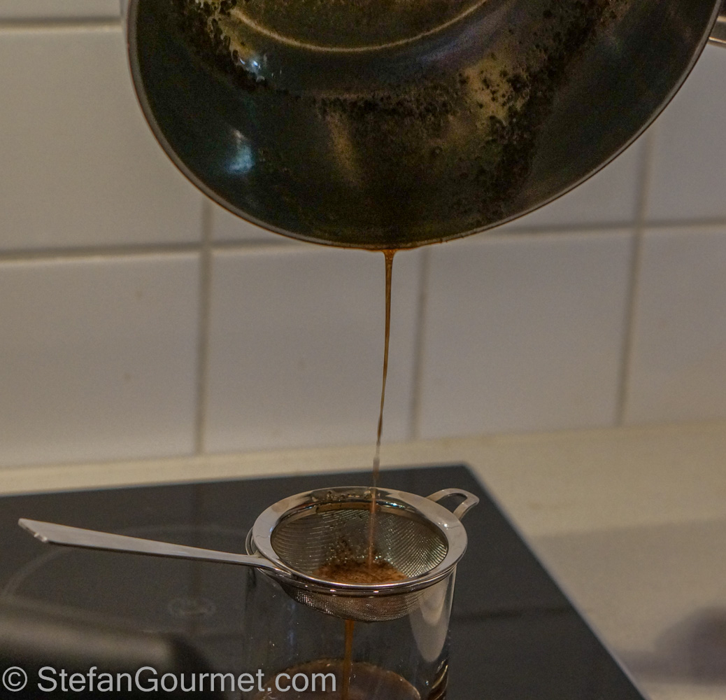 It wouldn’t set and this is where we went wrong, because we added a bit more agar and reheated it. Now it did set, but the agar could be tasted too strongly.