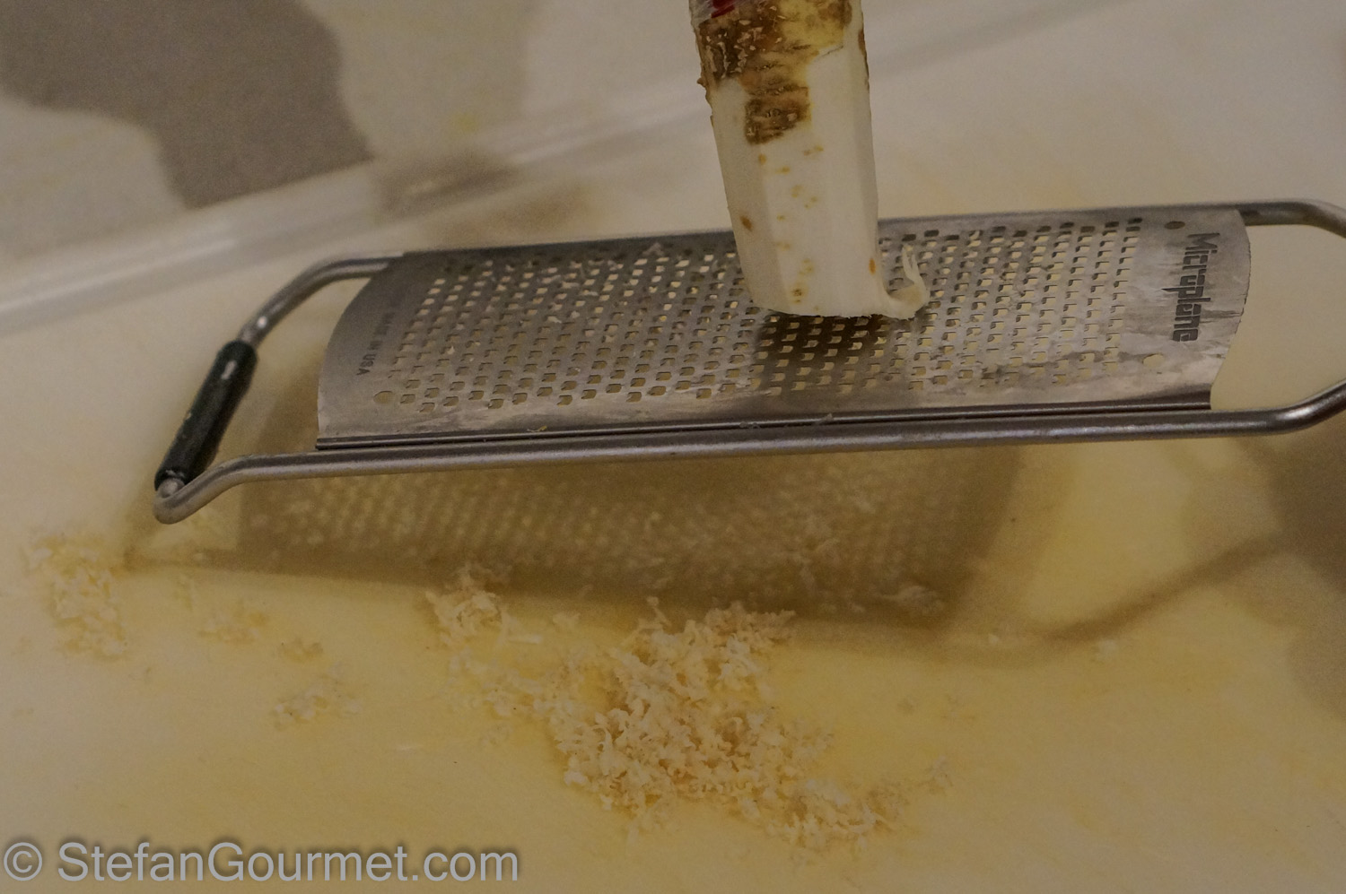 • Shaved Horseradish, Mint leaves, and Lime zest julienne for garnish