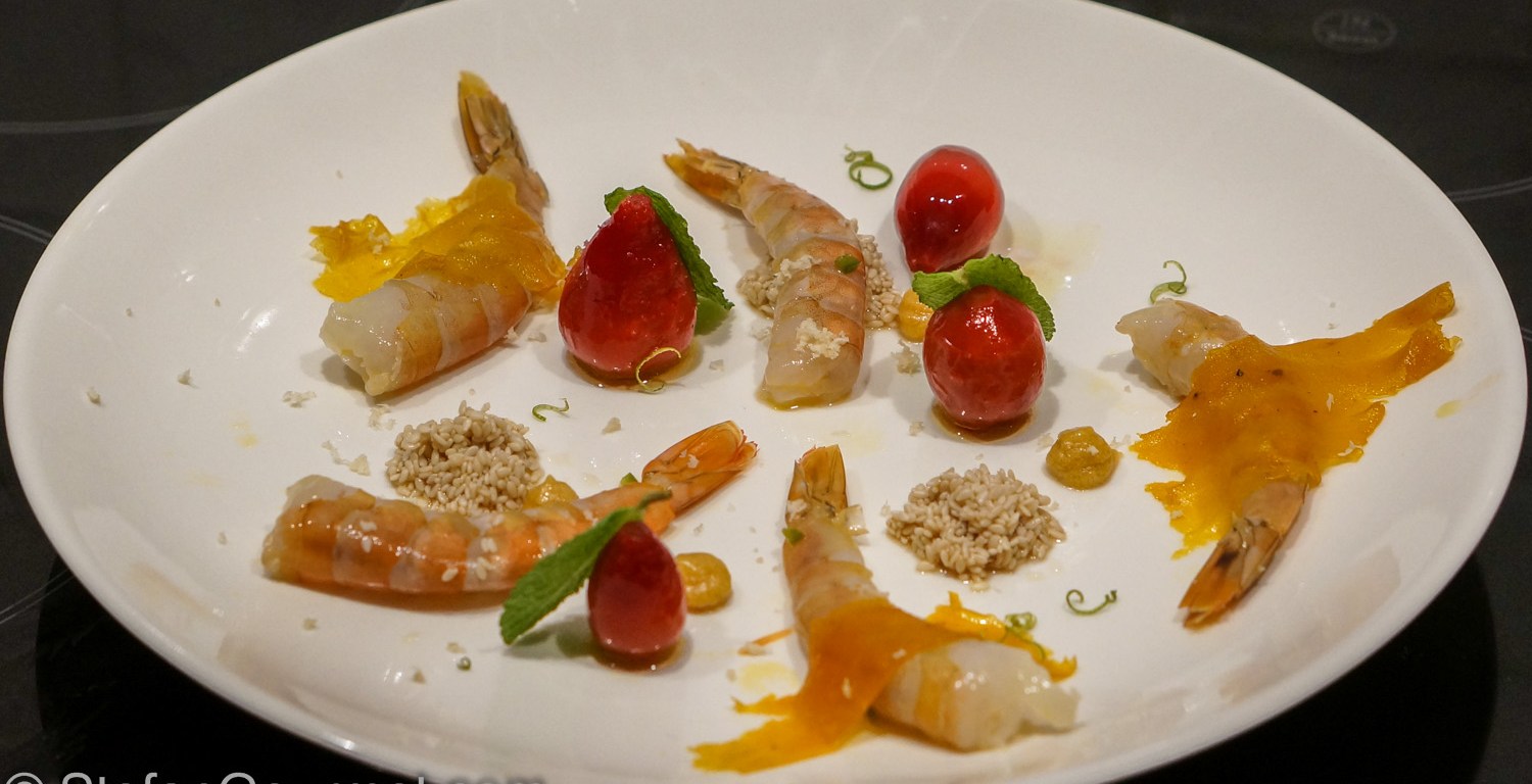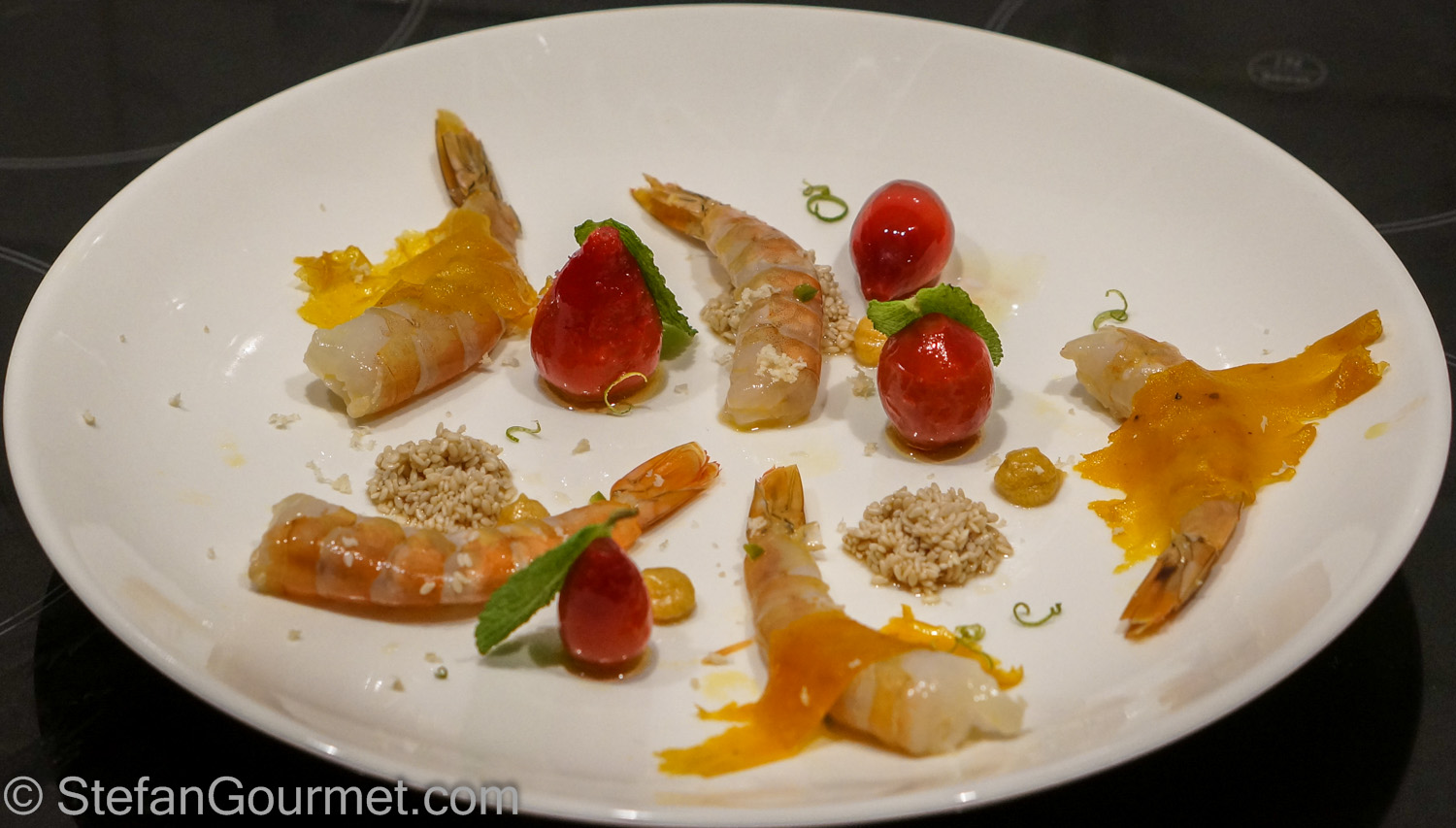 It may be worth it with just the shrimp, passion fruit leather, beets, and garnishes. The fluid gel and sesame seeds are not worth the trouble.