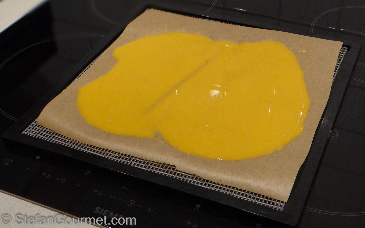 Spread out the mixture on a silicone mat (the best option, but I don’t own one) or parchment paper.