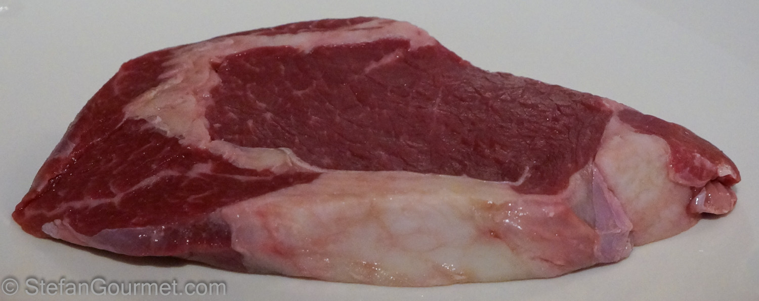 Bison is not usually available around here, so when I saw a bison ribeye I picked it up at once. Great meat like that needs very little, so I decided to only ‘warm age’ it sous-vide, and then quickly pan sear it. As a side I roasted some pink eggplant. It was very simple, but absolutely delicious. You don’t need a sous-vide cooker to prepare this, so read on!