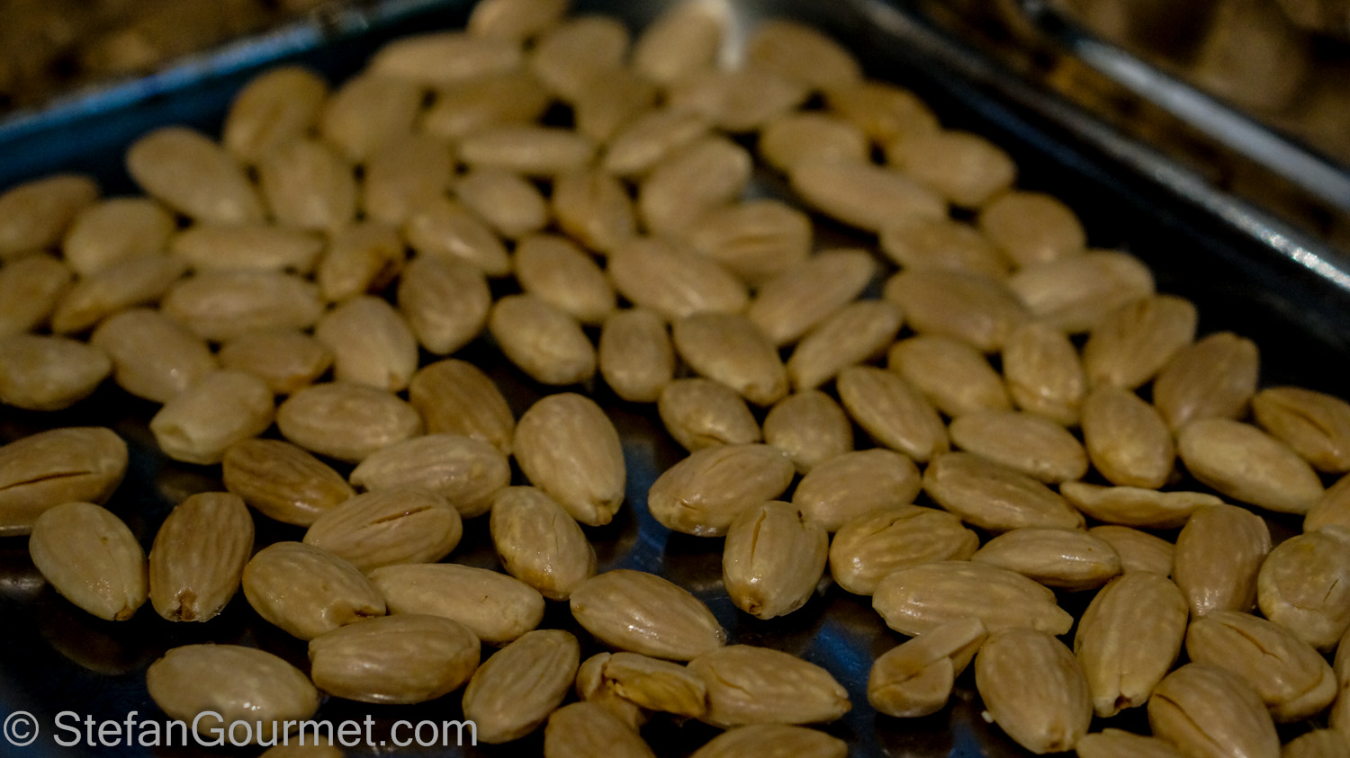 Roast the almonds for 10 minutes at 180ºC/350ºF or until nicely golden. Lower the thermostat of the oven to 150ºC/300ºF (fan forced).