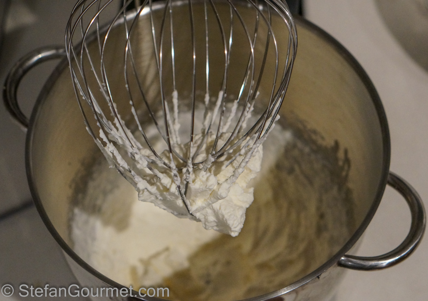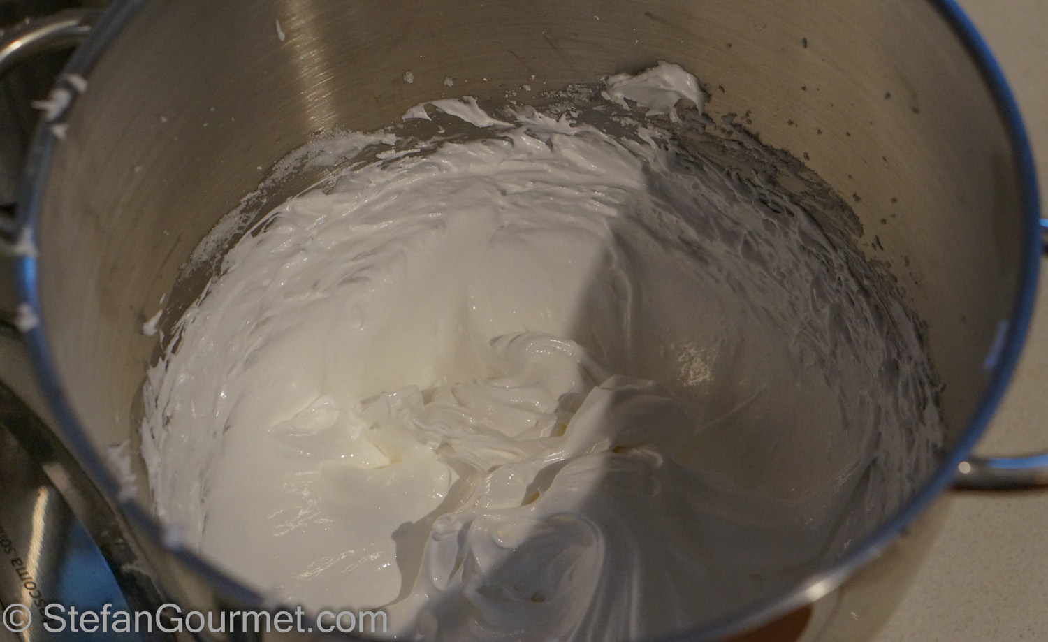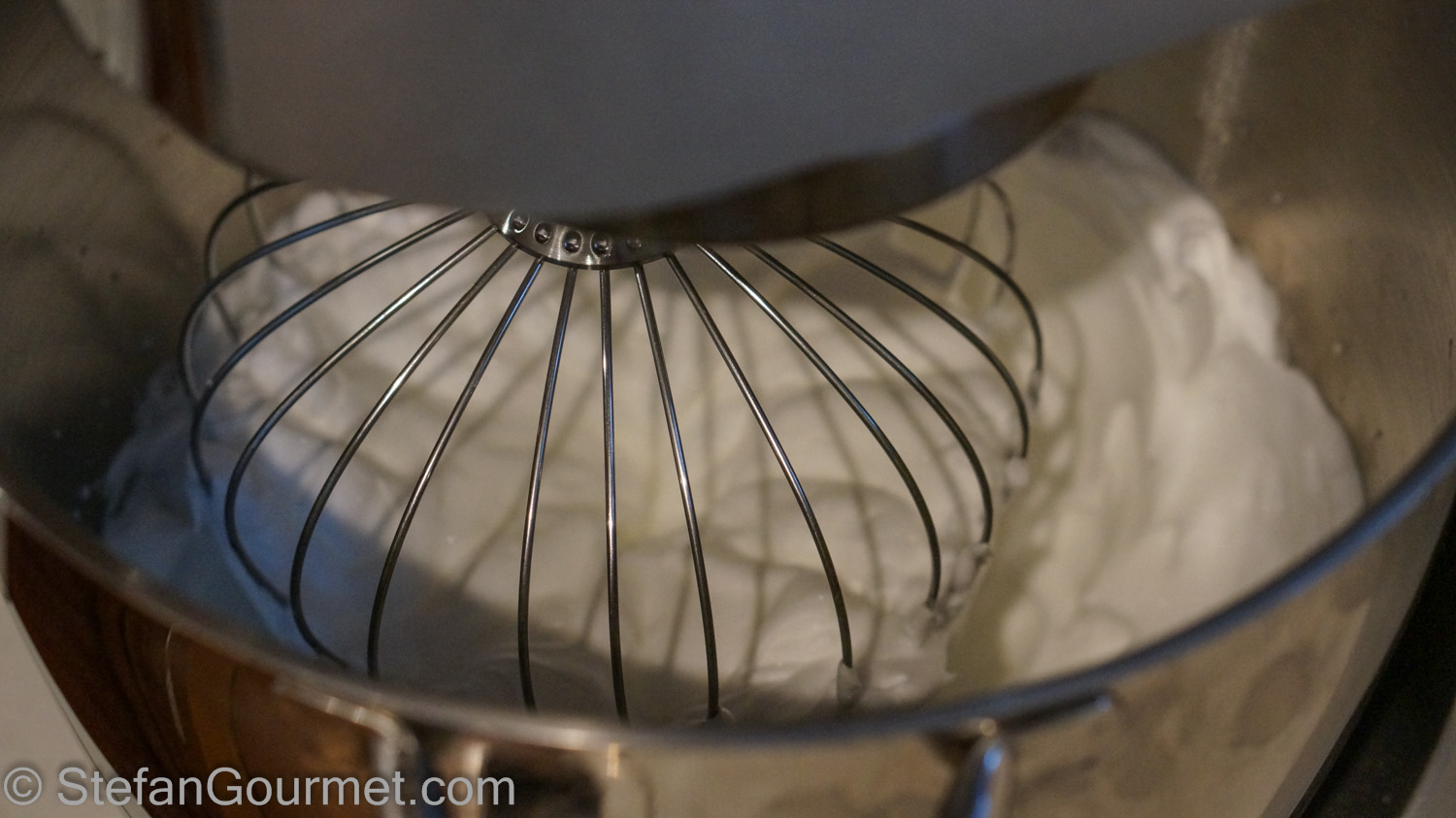 Whip the whipping cream with the sugar and vanilla extract, again using the stand mixer with the balloon whisk (clean it first though).