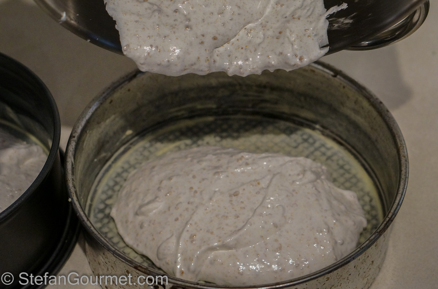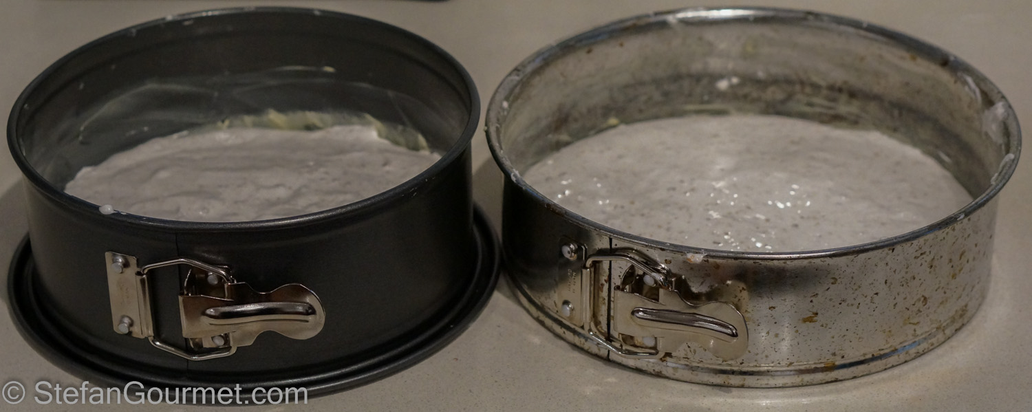 Butter two 20 cm (8″) cake tins. Line them with parchment paper and butter the parchment paper as well.