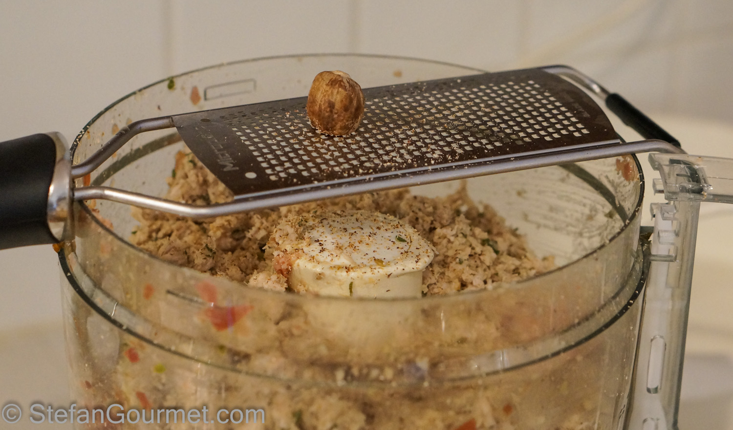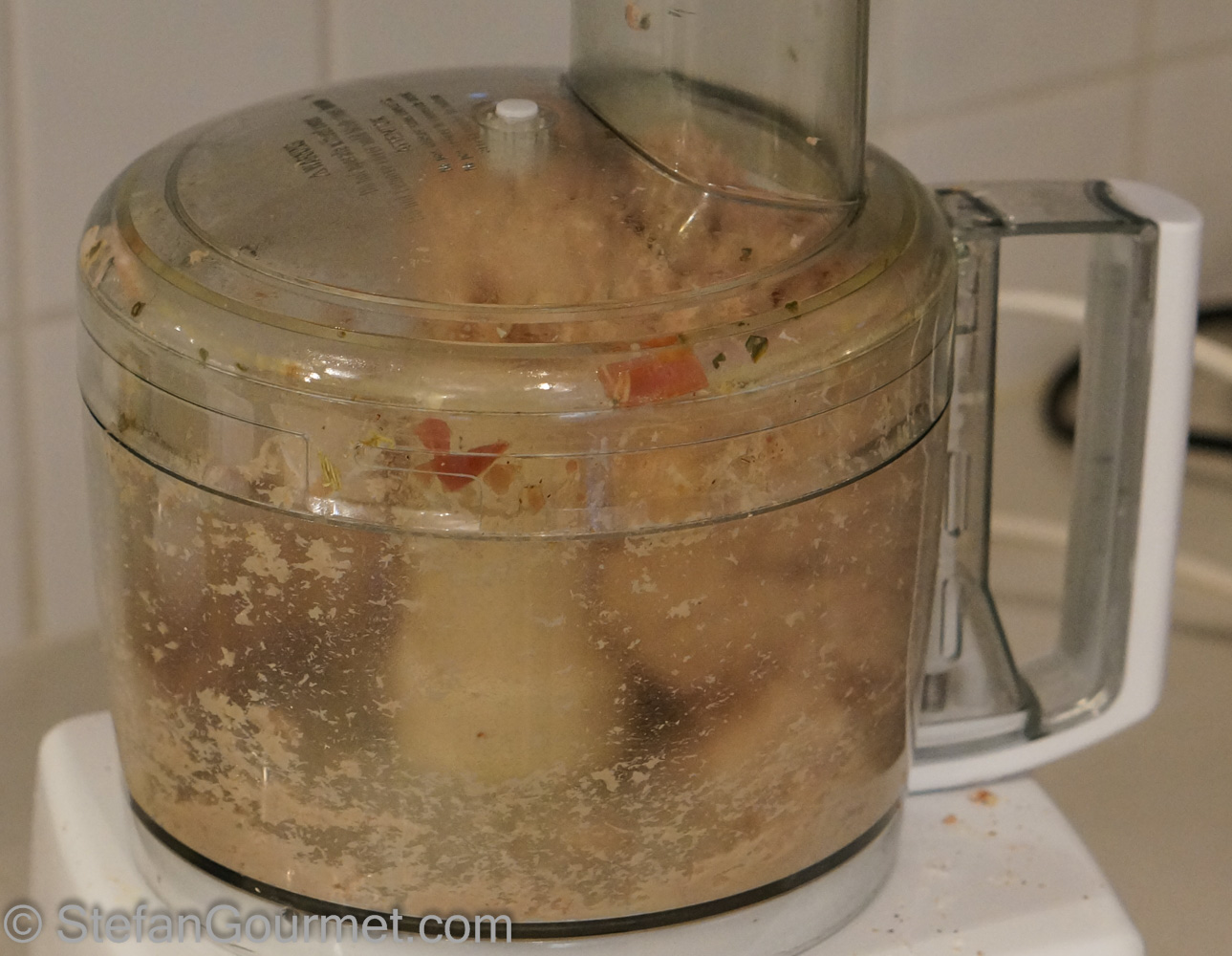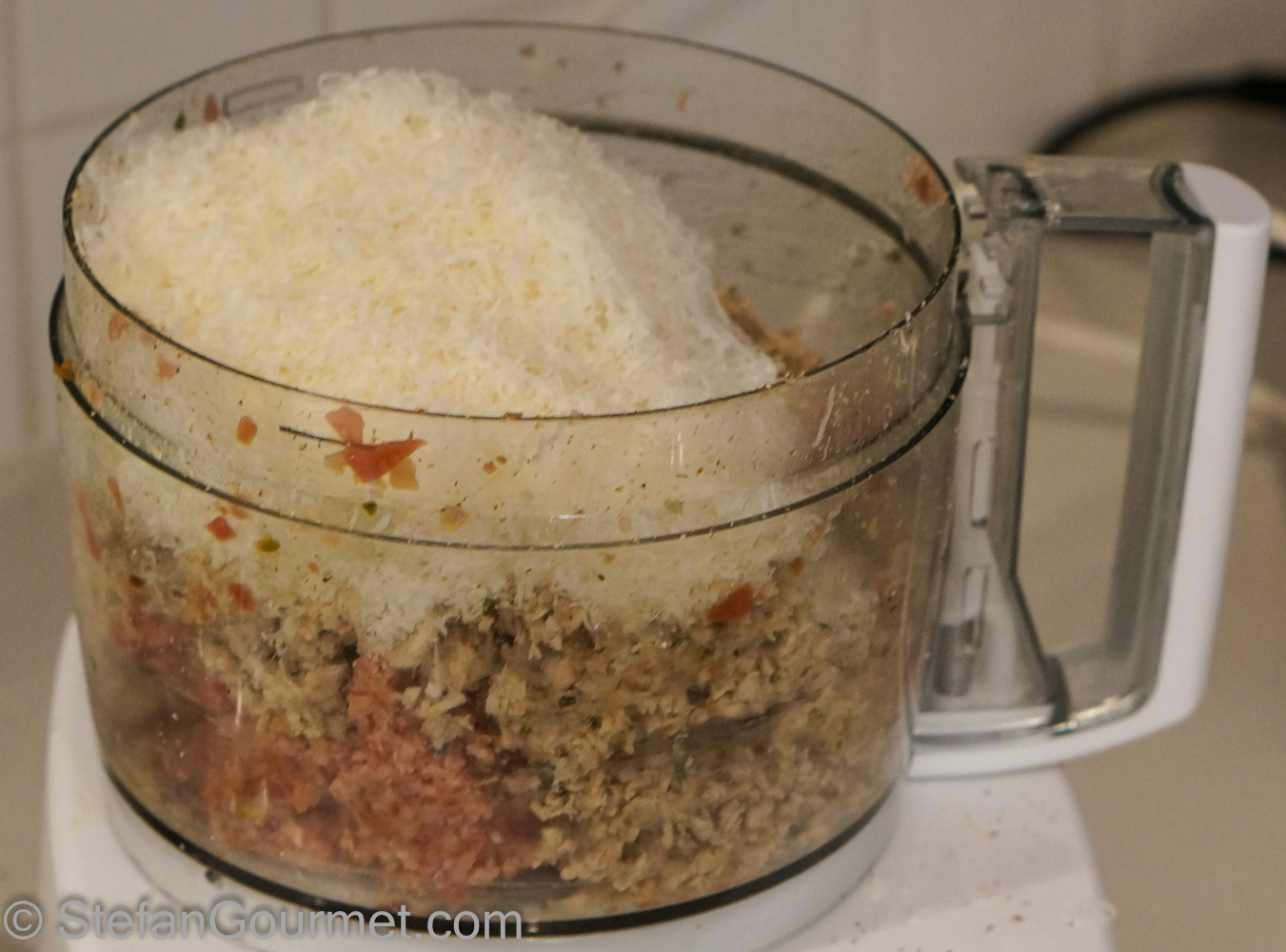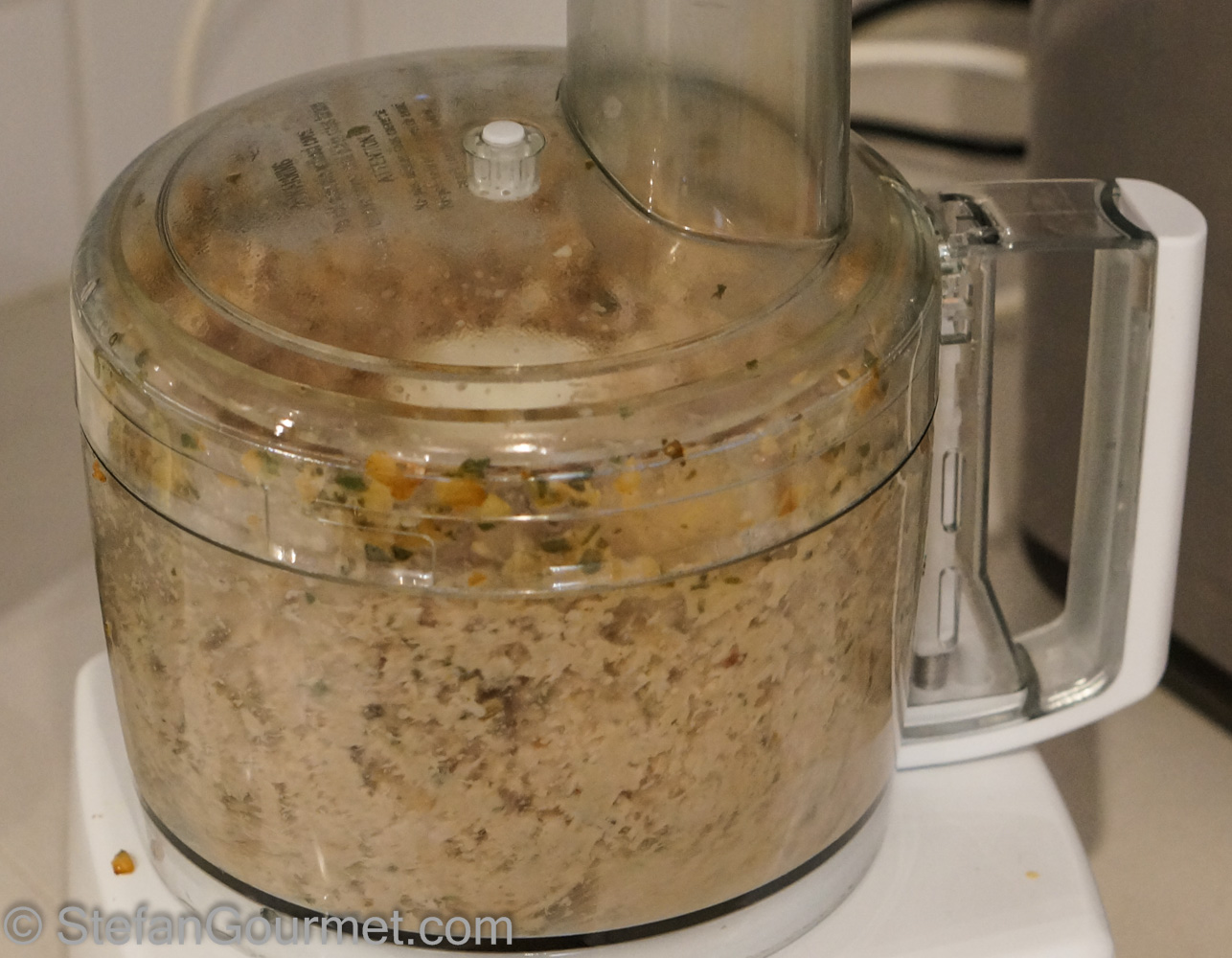Grind to obtain a course mixture. If you have a very large food processor or make only half of the recipe, you can grind everything at once. I had to do it in a couple of batches and mix everything together afterwards.