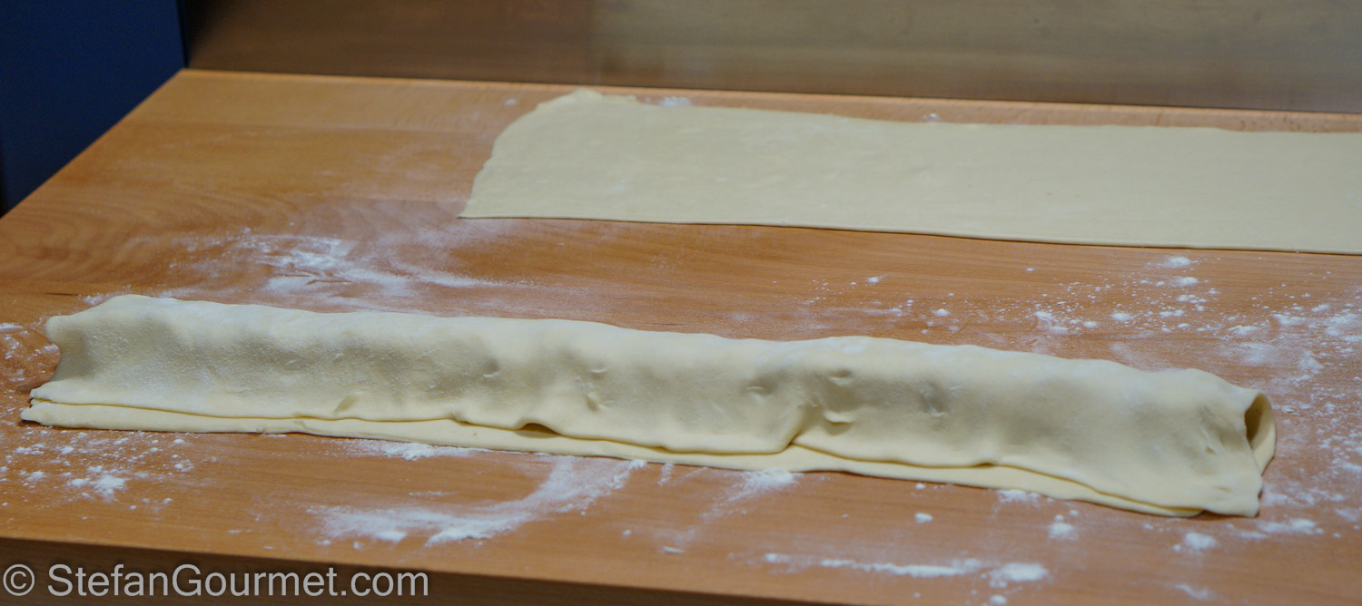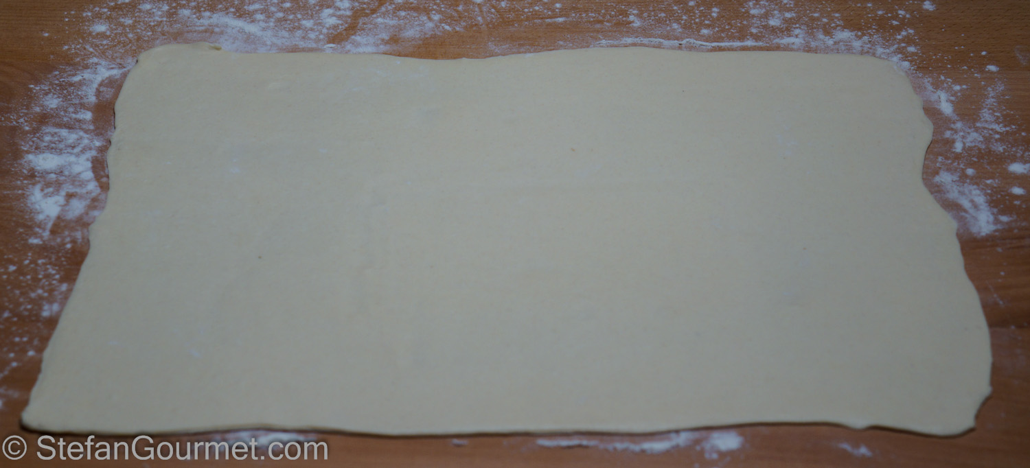 This piece of puff pastry is 60 cm by 15 cm (24 by 6 inches).