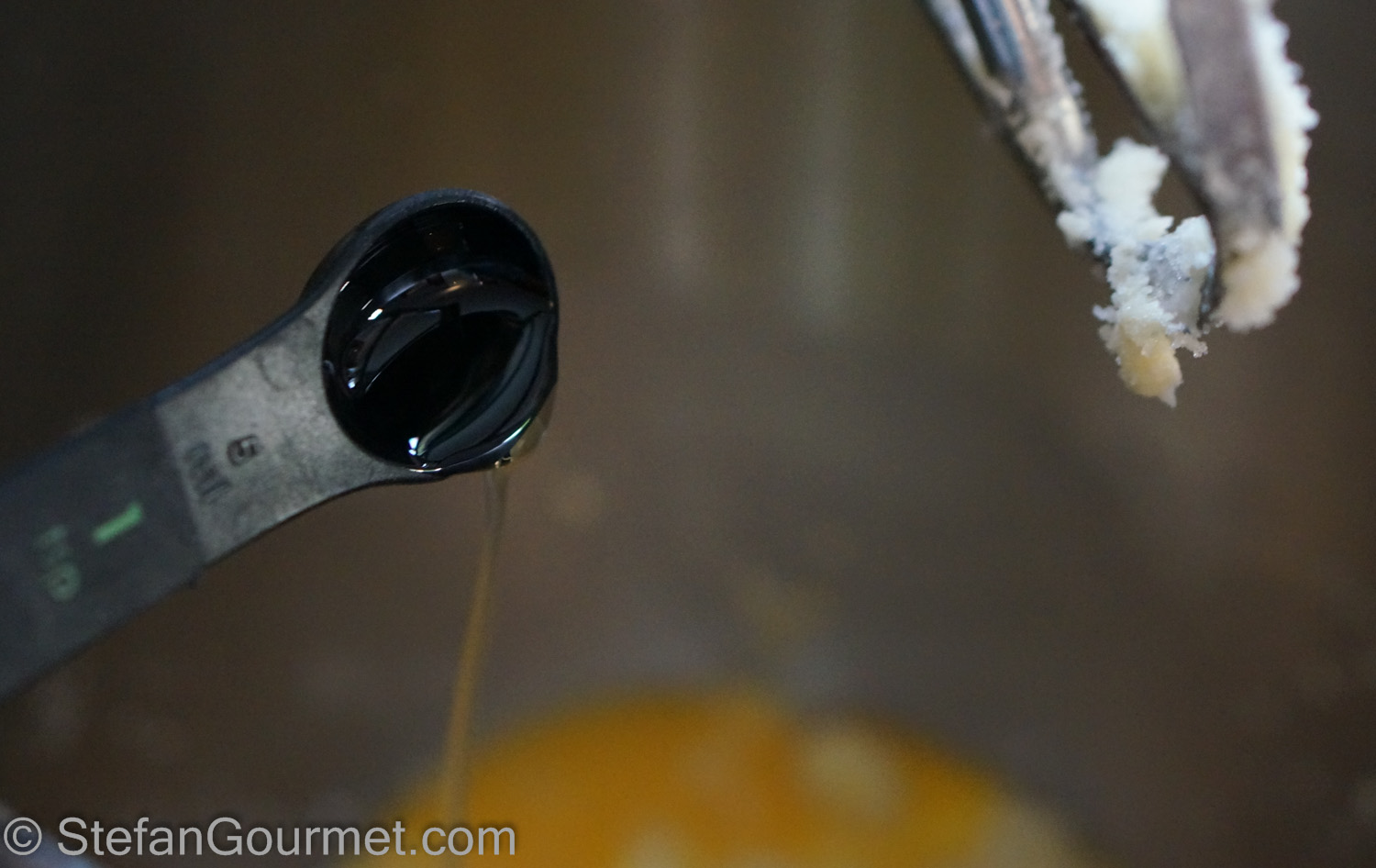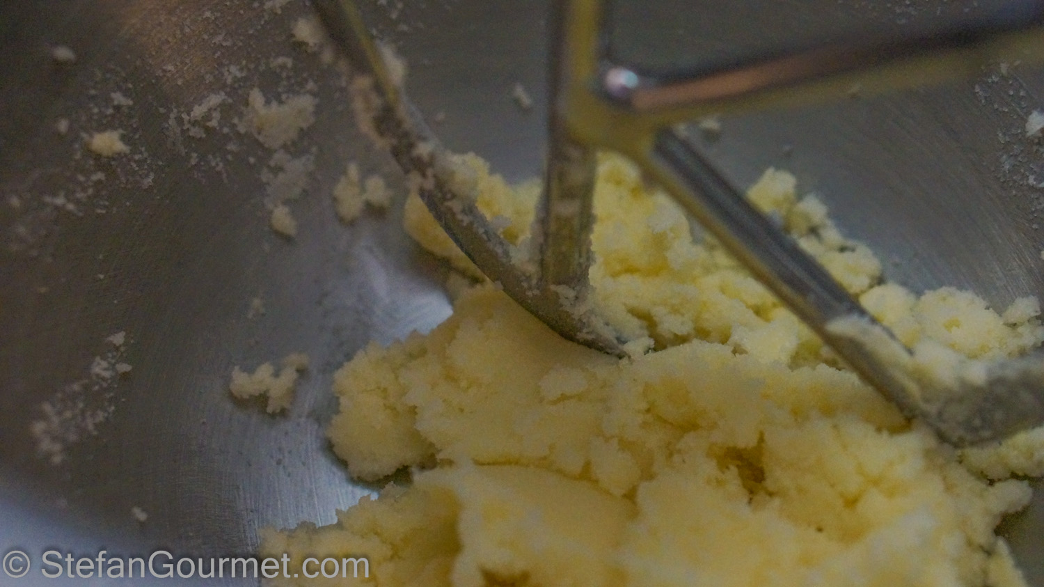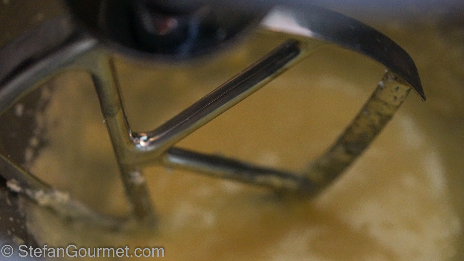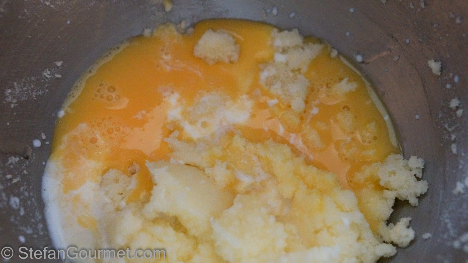 Turn on the mixer and slowly add the almond meal while the machine is running.