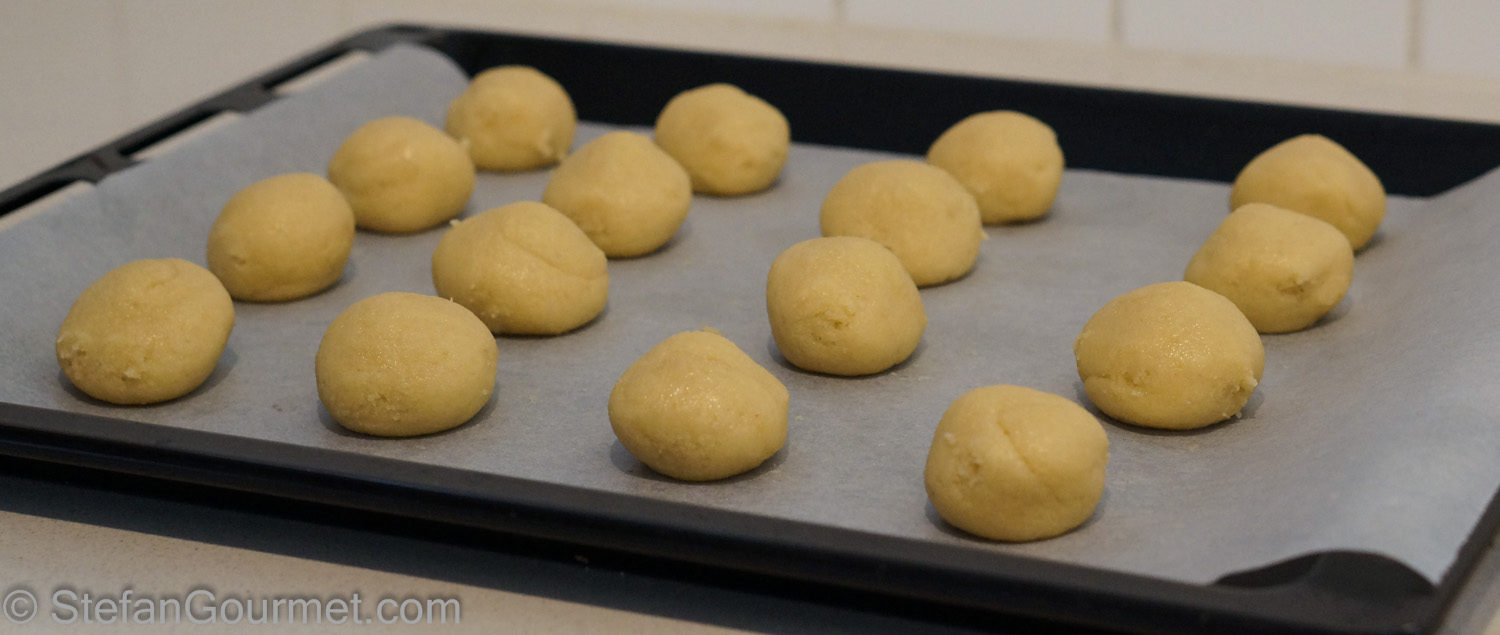 Arrange the balls on a baking sheet lined with parchment paper, putting them far apart as they will expand.