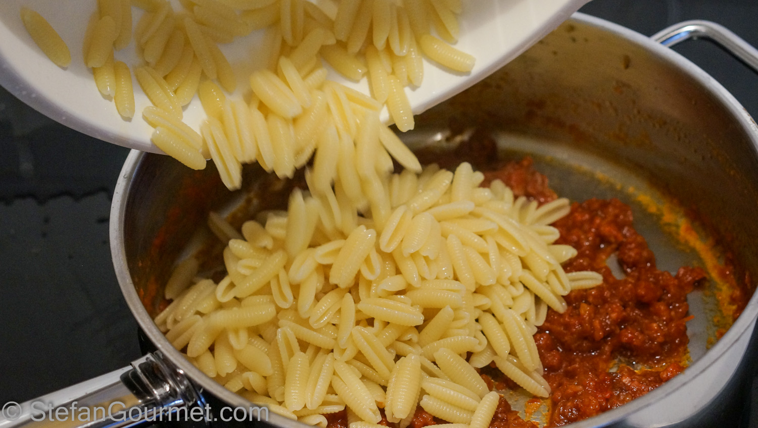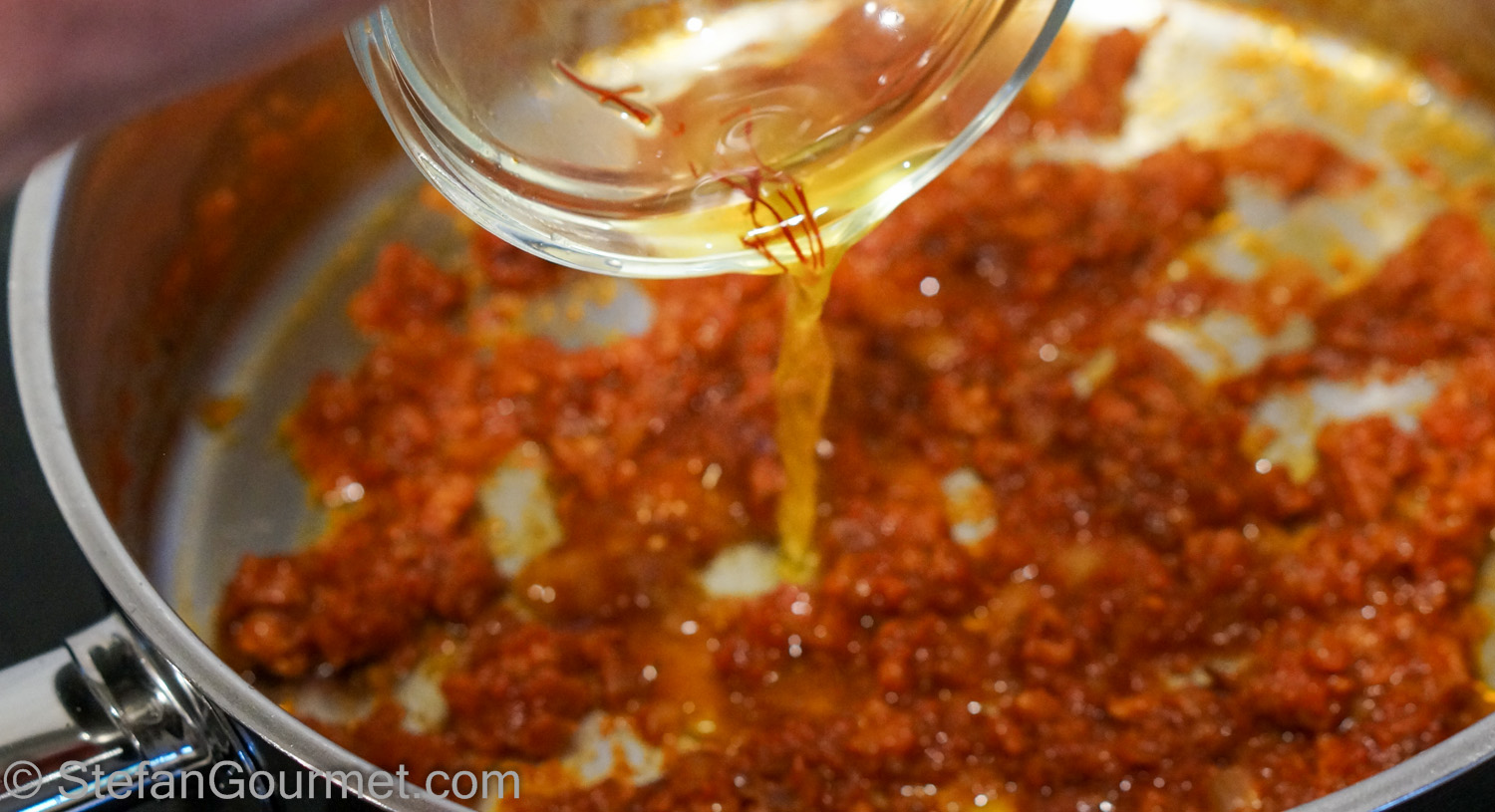 Add this saffron-infused water to the tomato sauce right before the pasta is ready.