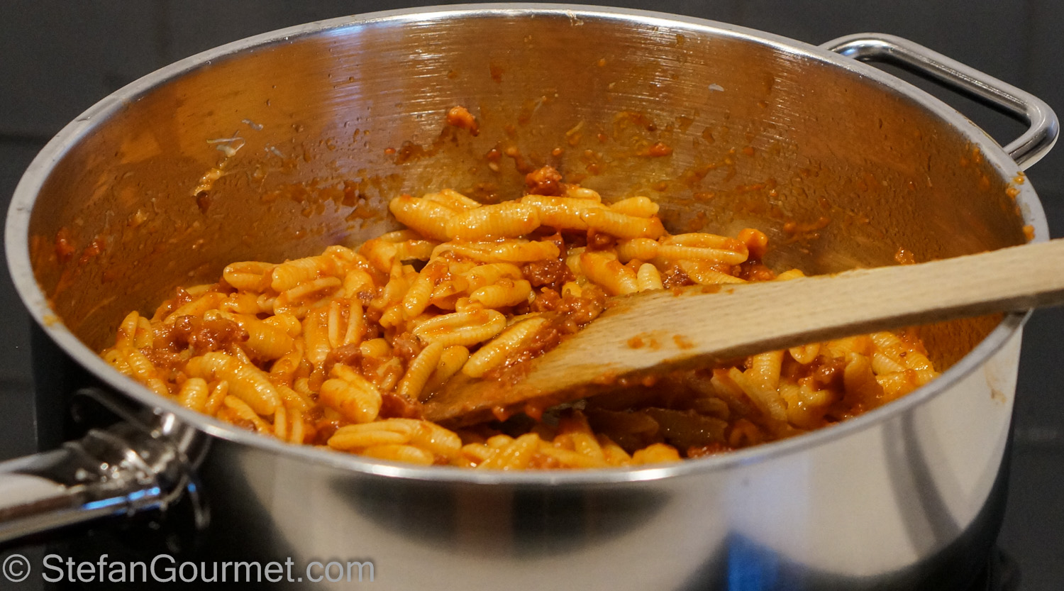 un piatto semplice ma sempre buonissimo; inoltre il formato dei malloreddus è perfetto per raccogliere il sugo.