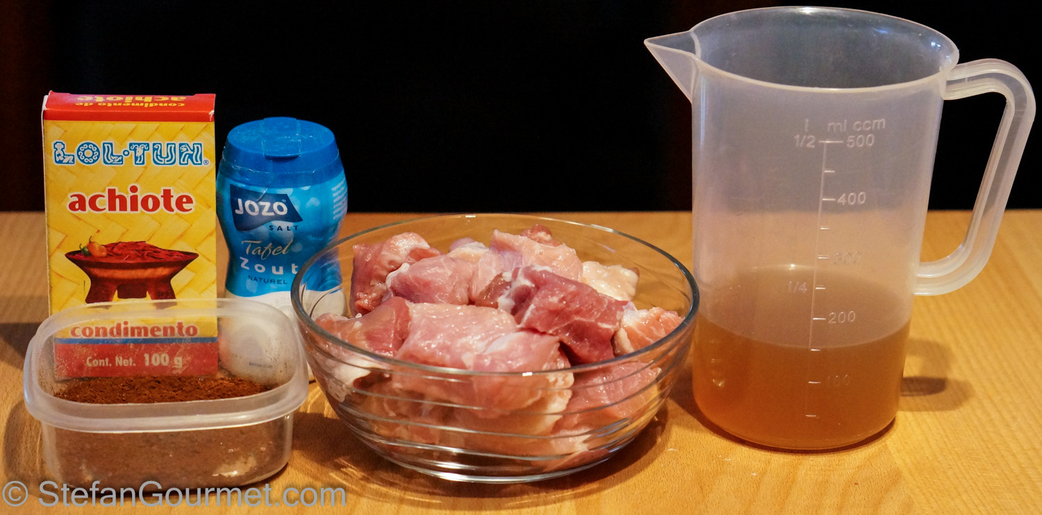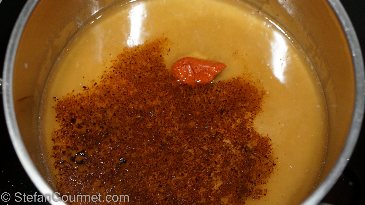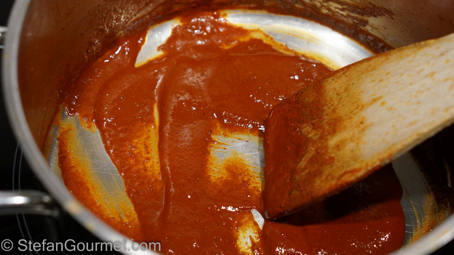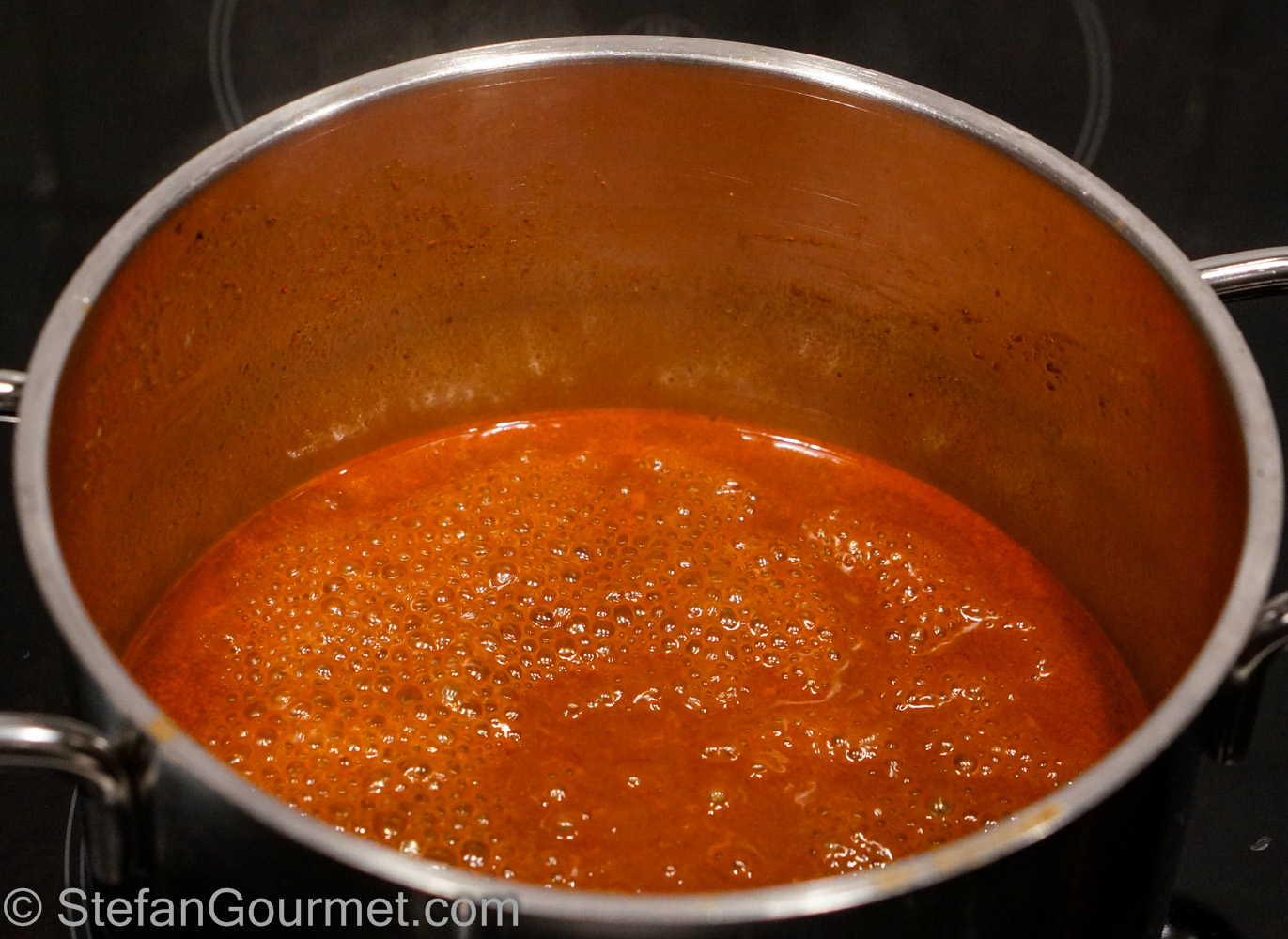 Bring to a boil, and cook, stirring, over medium high heat. It took me quite a bit of stirring to dissolve the achiote paste, but in the end it did dissolve.