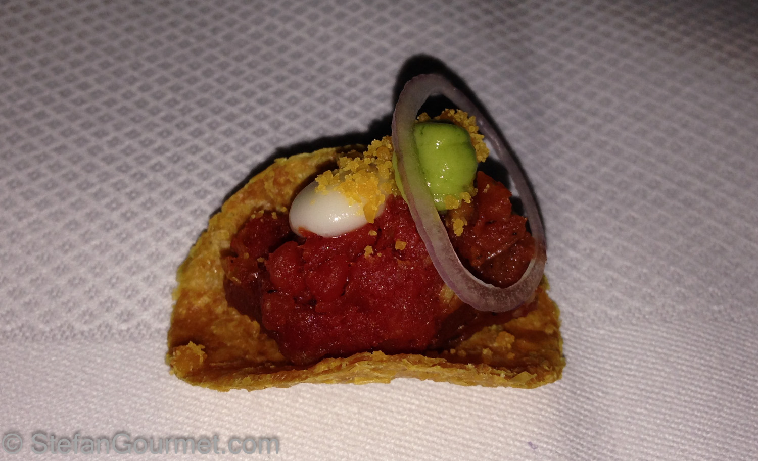 The first amuse bouche was a mini taco with roasted tomato and other flavors. This had many layers of flavor, very nice.