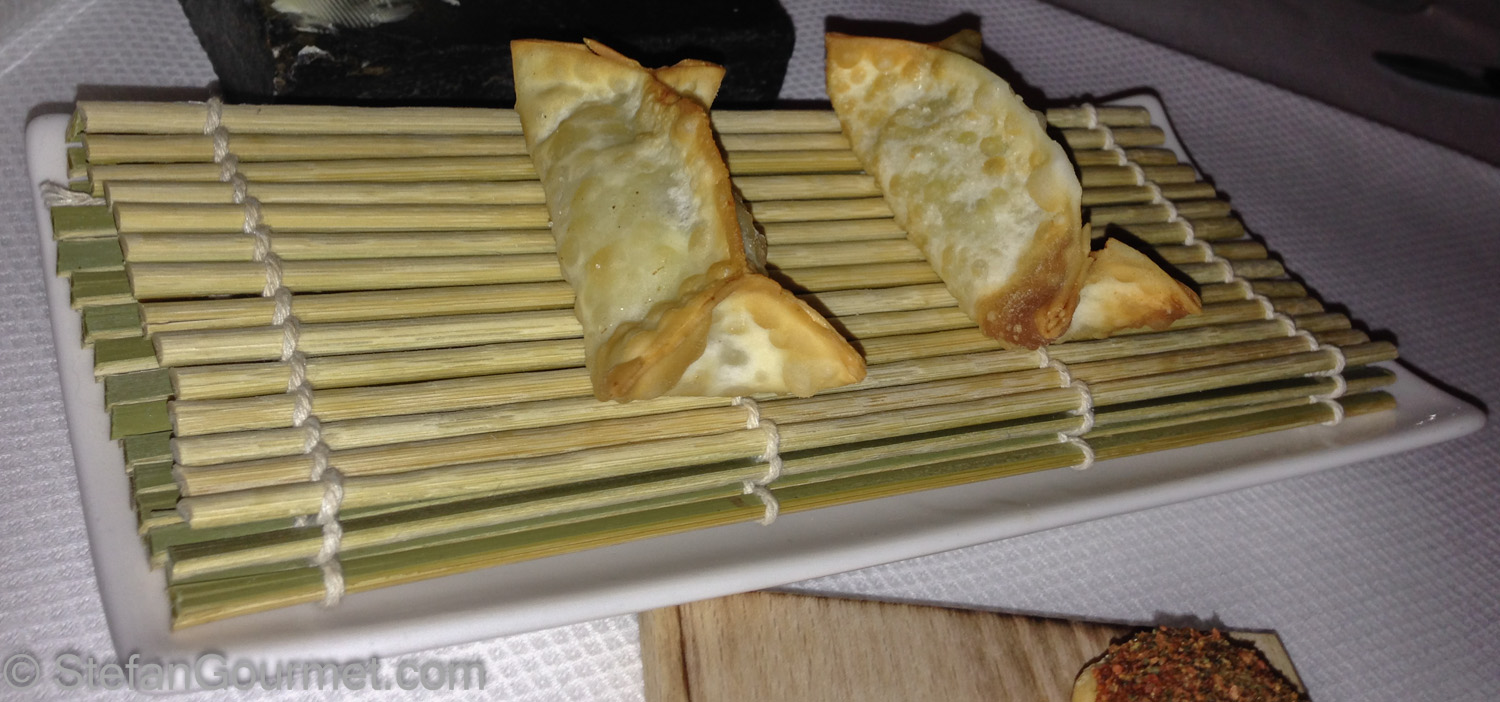 The deep-fried ‘dim sum’ with feta, leeks, and ginger were delicious. I would never have thought to combine these three ingredients, but it worked.