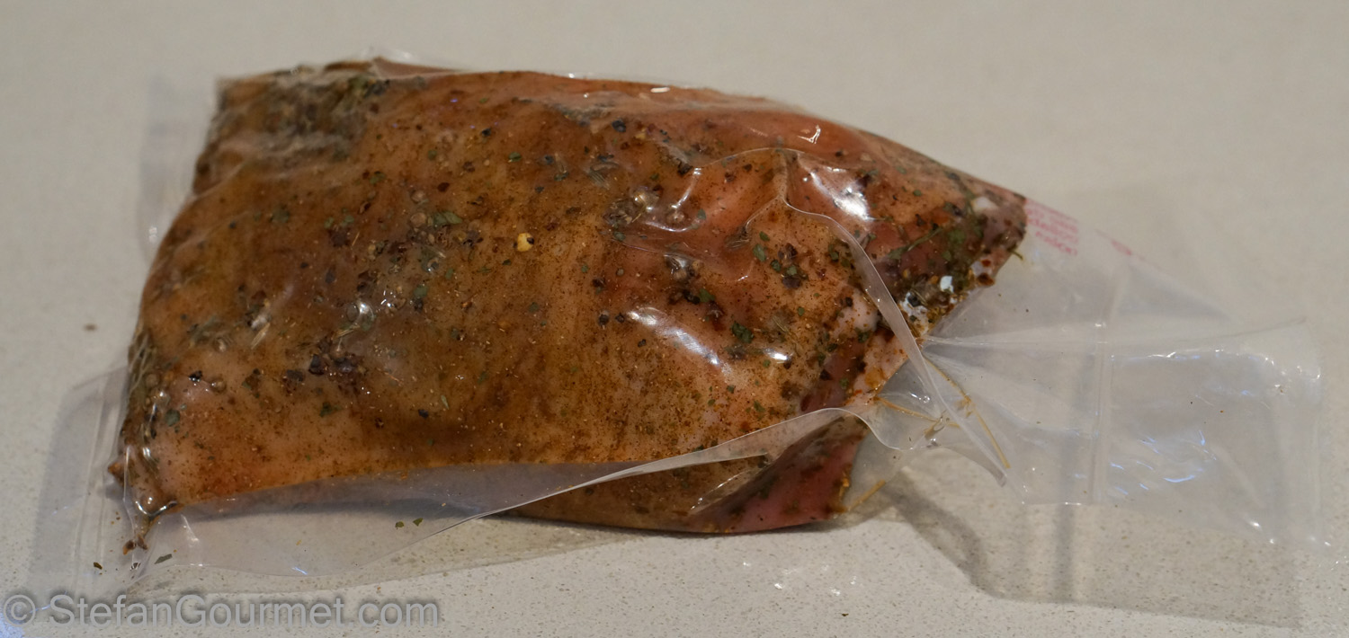 Then on Tuesday night I put it in the sous-vide at 57ºC/135ºF.