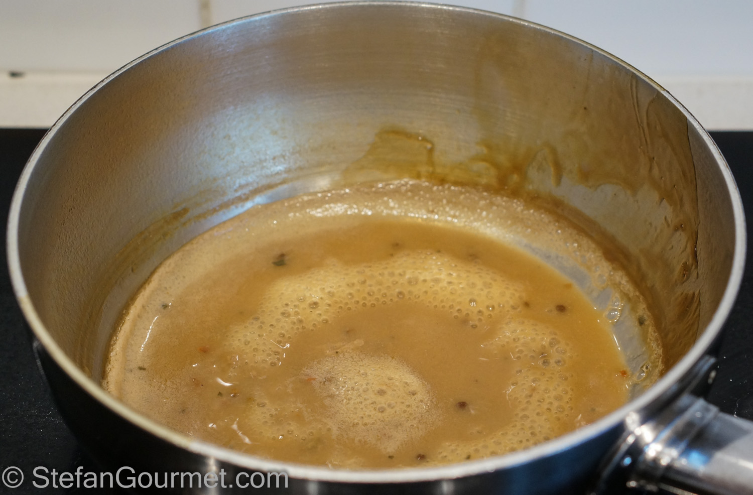 I poured the juices from the bag into a saucepan…