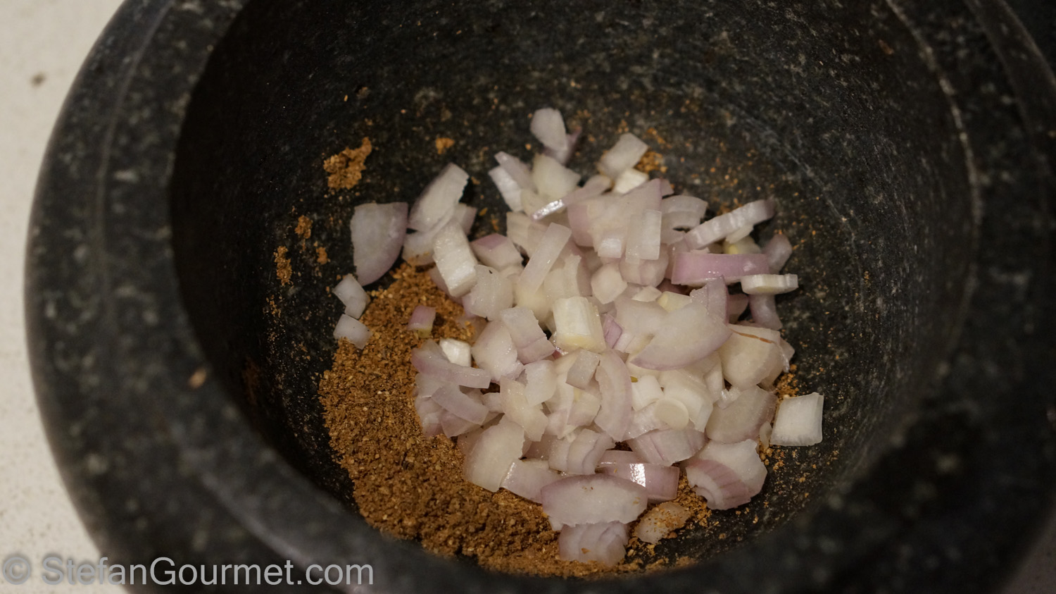 Add the shallots and pound them into pulp.