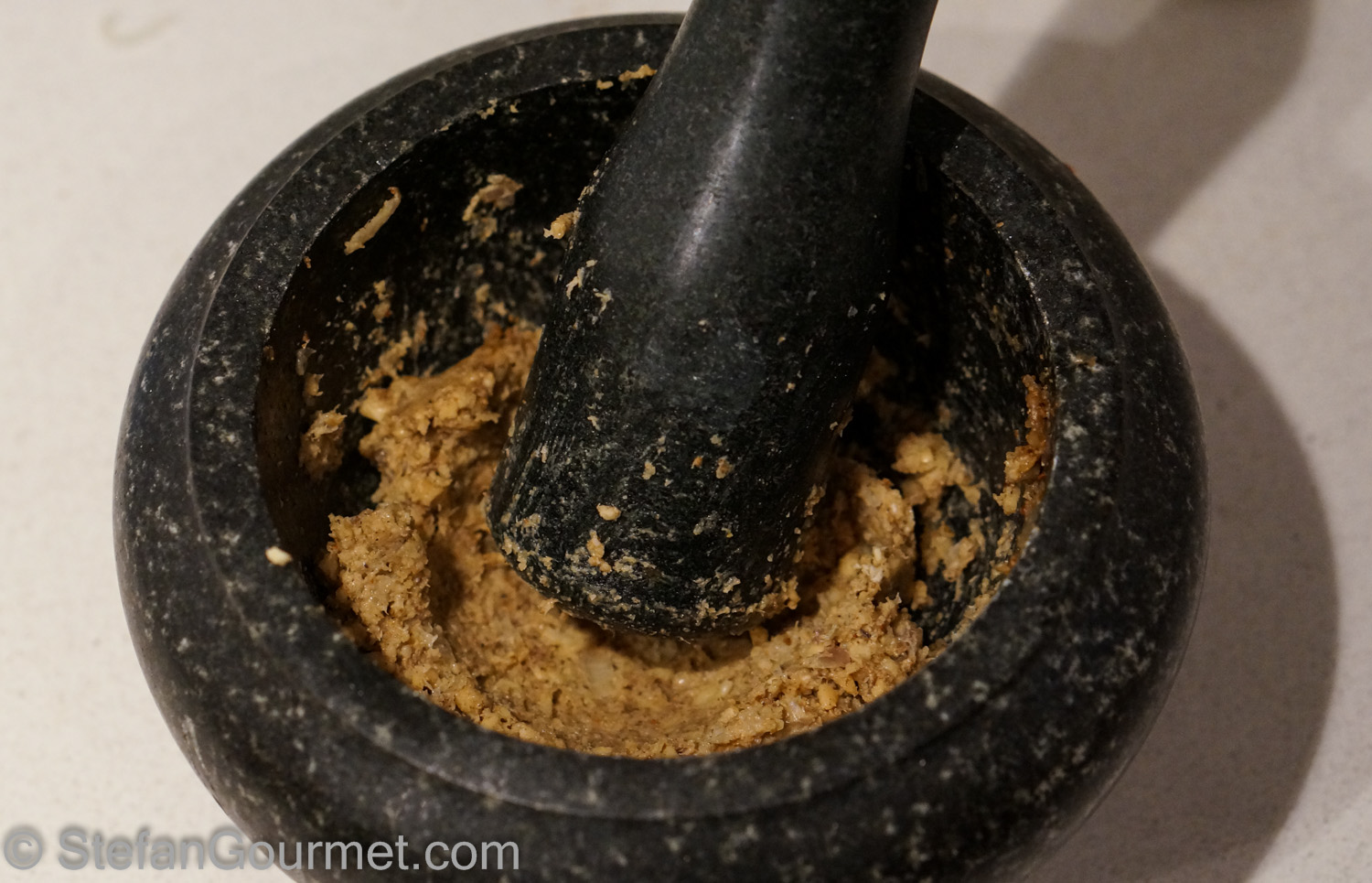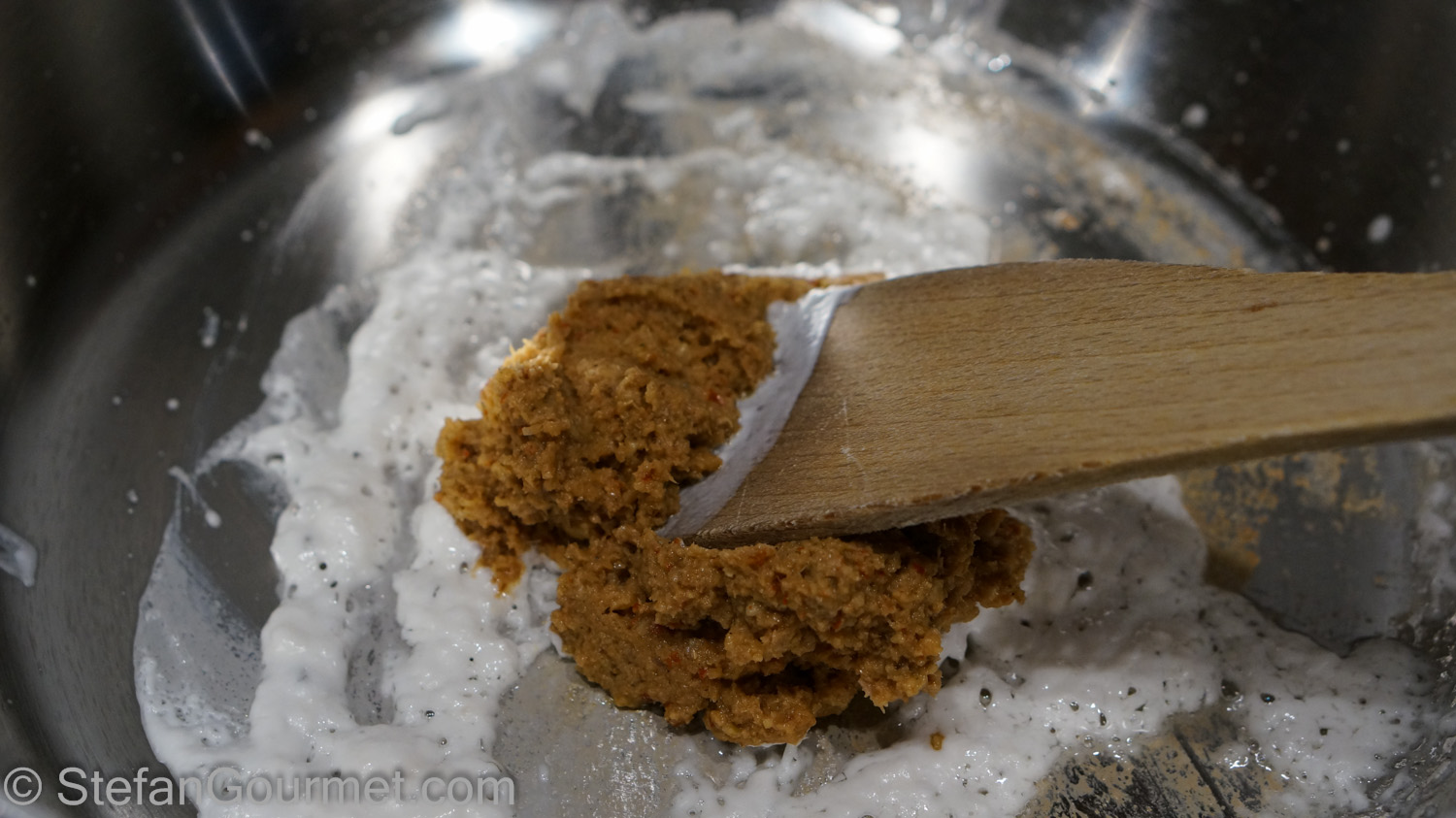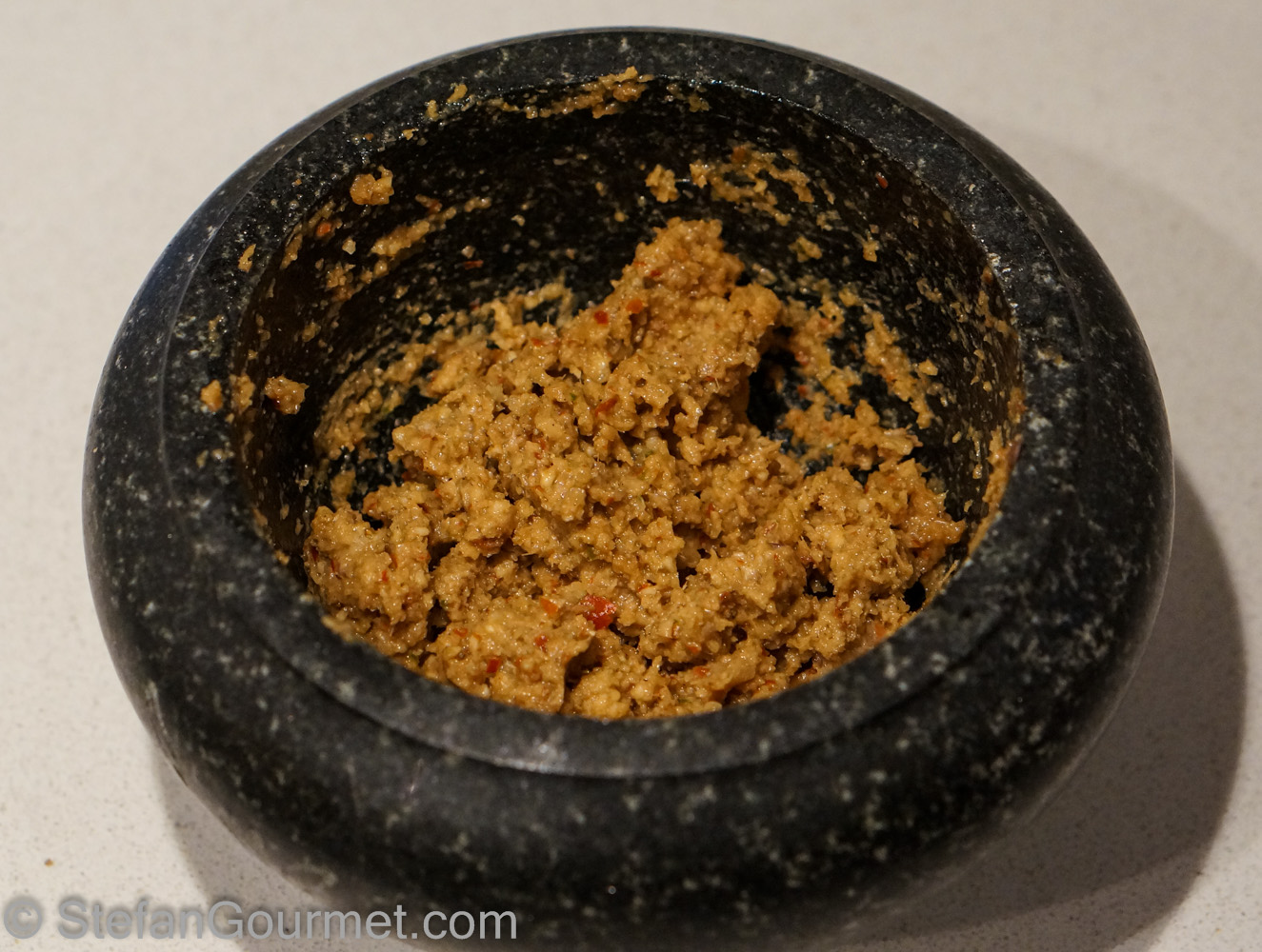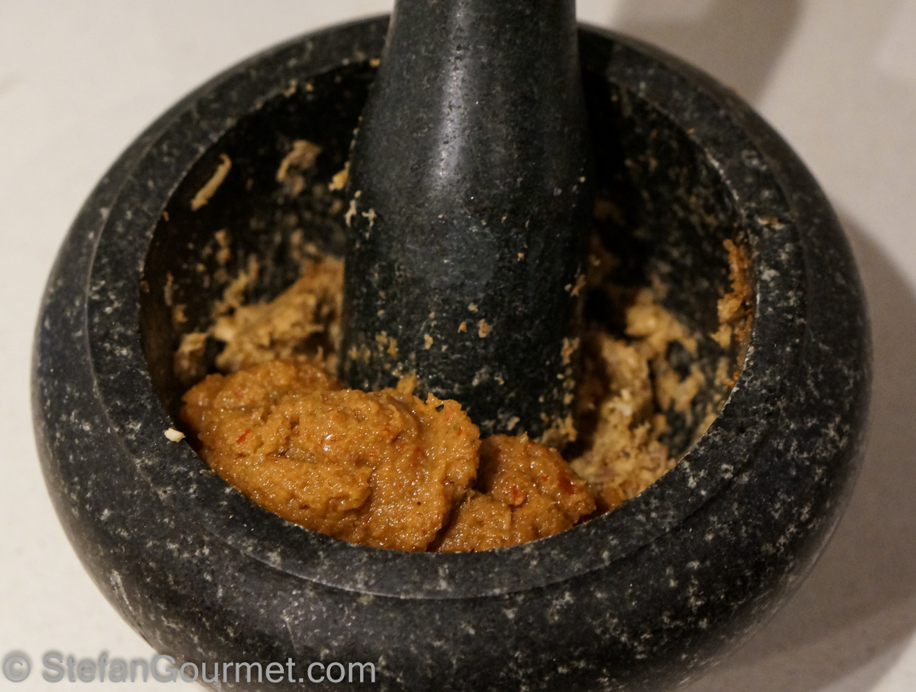 …and mix it in. Your Kaeng Panang red curry paste is ready!