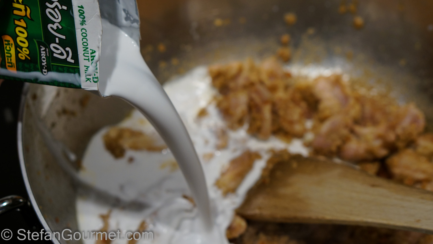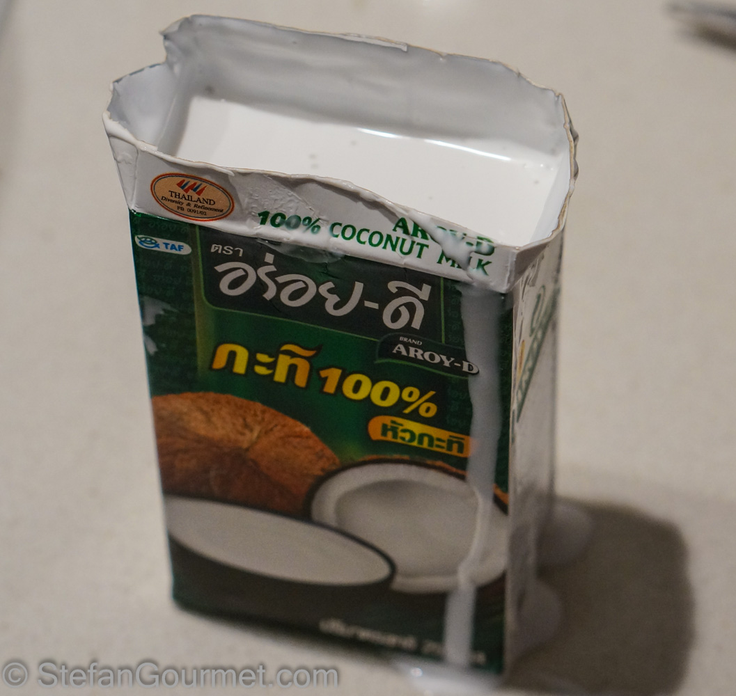 Now add the remaining coconut milk (mostly coconut water).