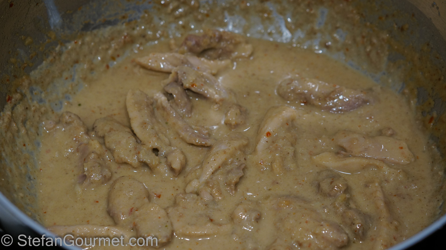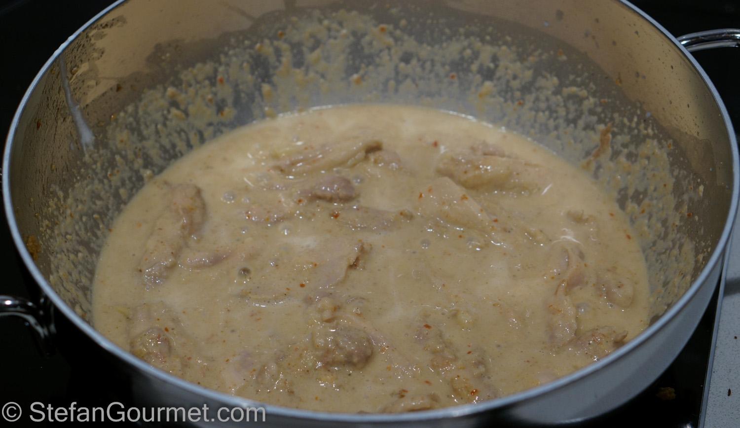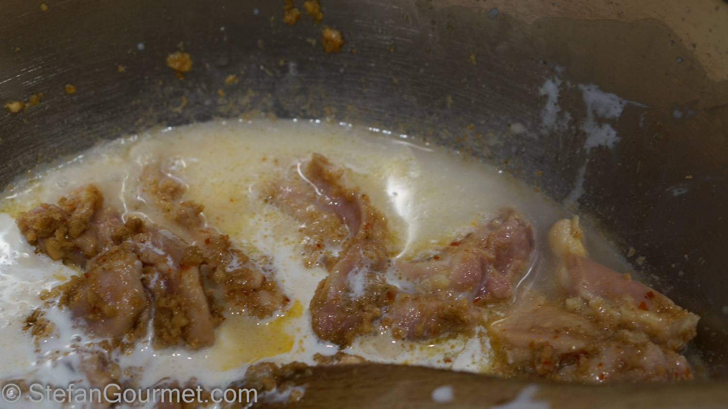 Then lower the heat and simmer until the curry has thickened and the chicken is tender.