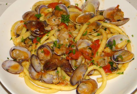 Two years ago I prepared homemade fresh pasta with clams, bigoli alle vongole, and it was delicious. Pasta alle vongole is one of our favorite pasta dishes. The thick homemade noodles take this dish over the top.