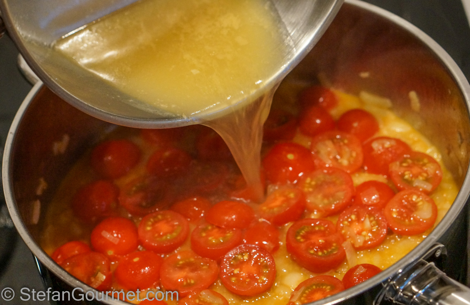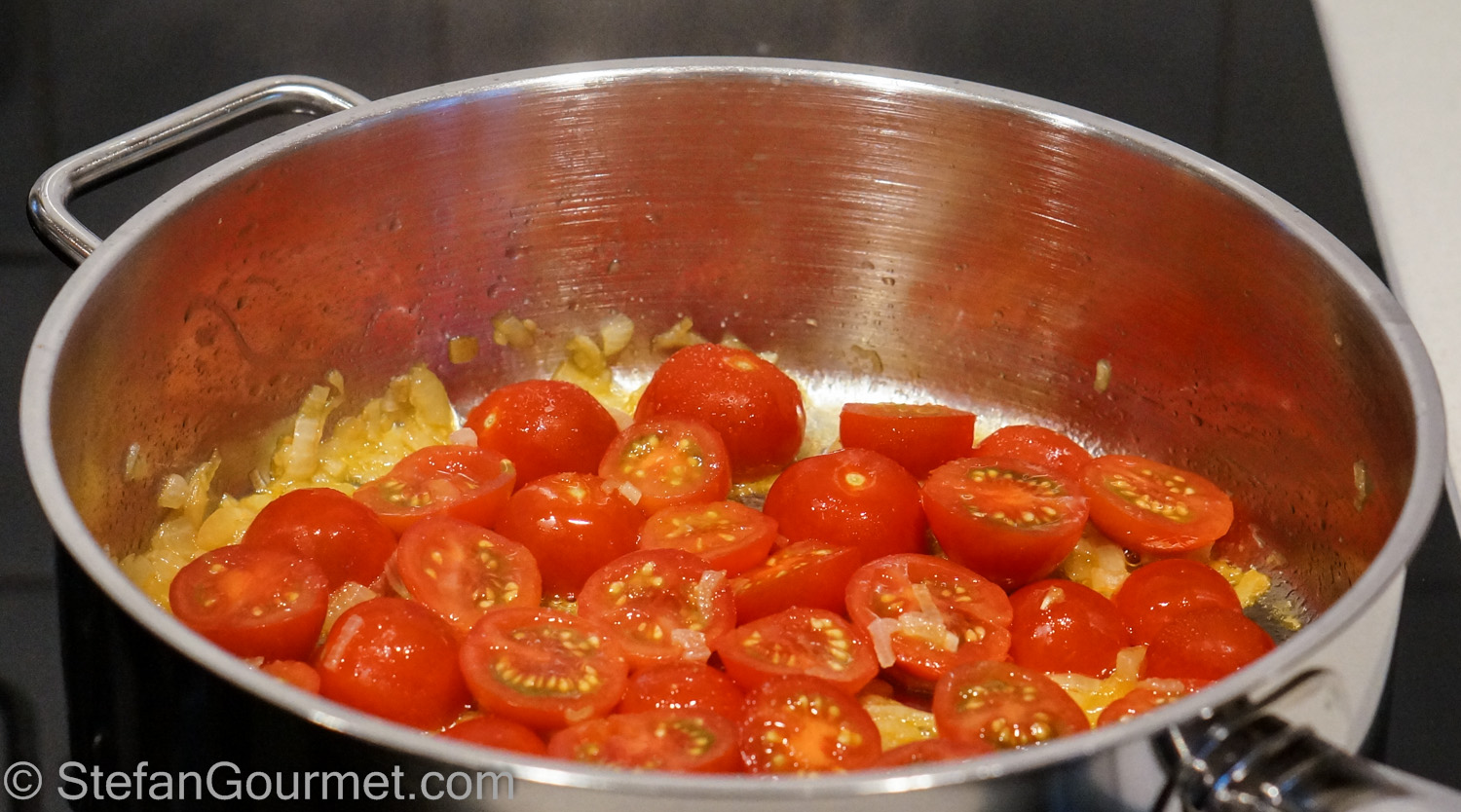 Like most Italian poor man’s dishes, this is very tasty as long as you use good ingredients. With fresh fish and ripe cherry tomatoes, this is absolutely wonderful.