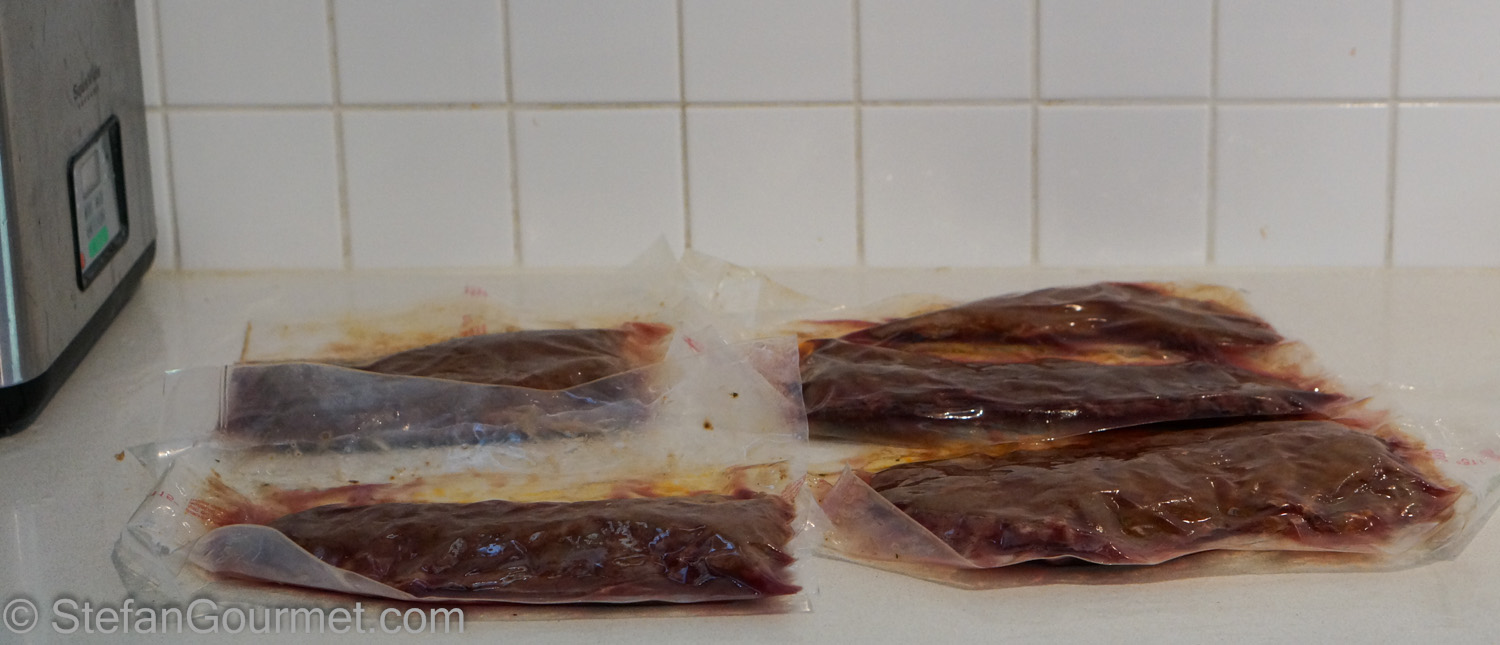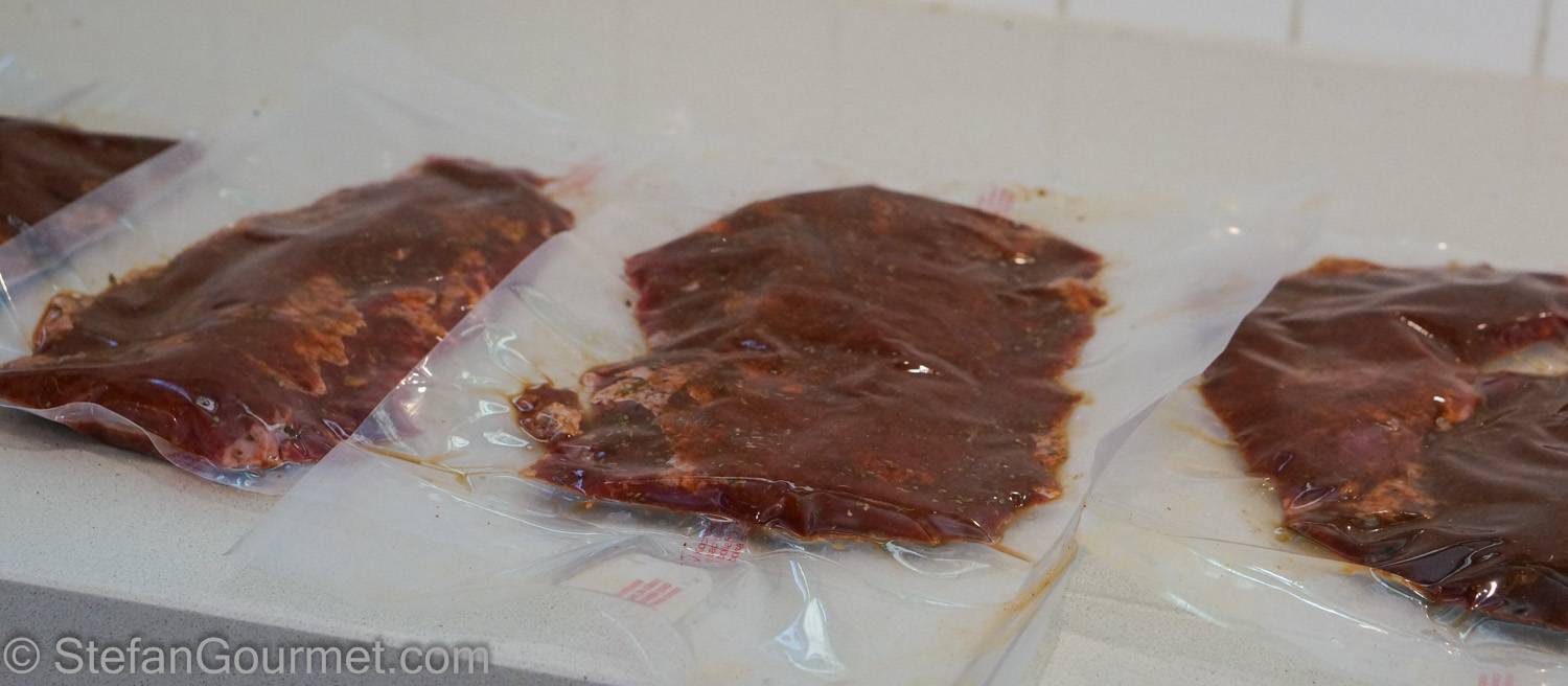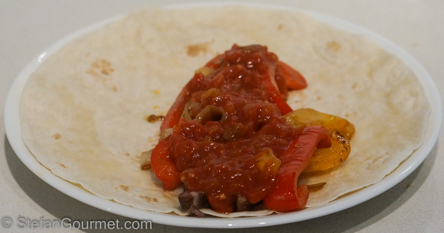 Now 48 hours seems like an awful lot of time. But remember that sous-vide cooks by itself. You don’t have to do anything during those 48 hours, just let the sous-vide cooker do its thing. Fajitas can be very quick to prepare if you use store-bought tortillas and store-bought salsa. If you like to go all the way, it’s great to make your own salsa and tortillas but that is not required for a very tasty result. When you do buy the store-bought stuff, check the label for natural ingredients. Ideally they should only contain the ingredients that you would also use yourself.