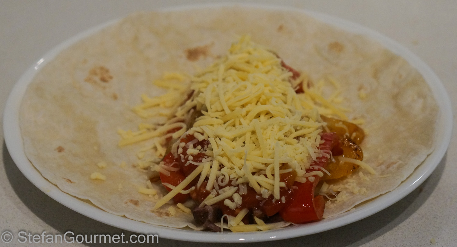 Now fold the tortilla into a wrap and serve at once.