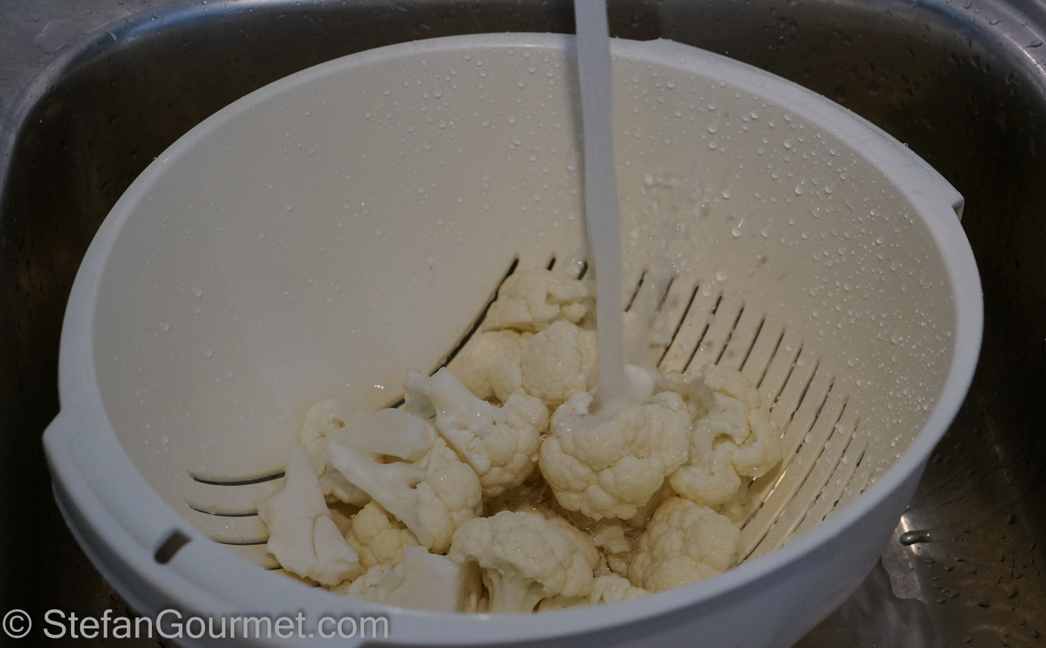Clean the cauliflower and keep about 100 grams (3.5 oz) of small cauliflower florets separate.