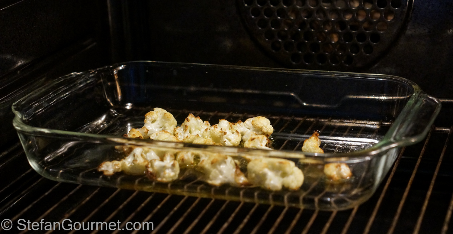 Preheat the oven to 200ºC/400ºF. Toss the reserved cauliflower with olive oil so it is completely coated.