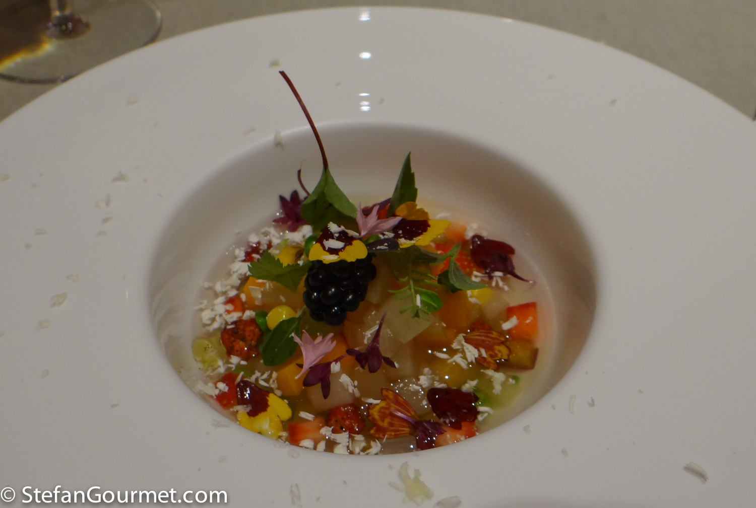 The ‘minstra’ of fruit and vegetables with grated white chocolate was a great palate cleanser. 9/10