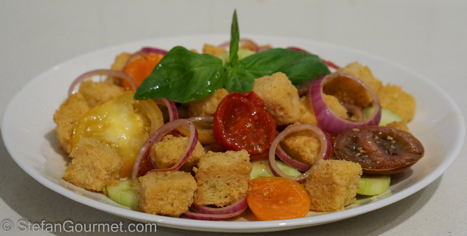Hi, Stefan. I love a good panzanella salad and this one looks great. It is the perfect summer dish. Love the plated photo, too.