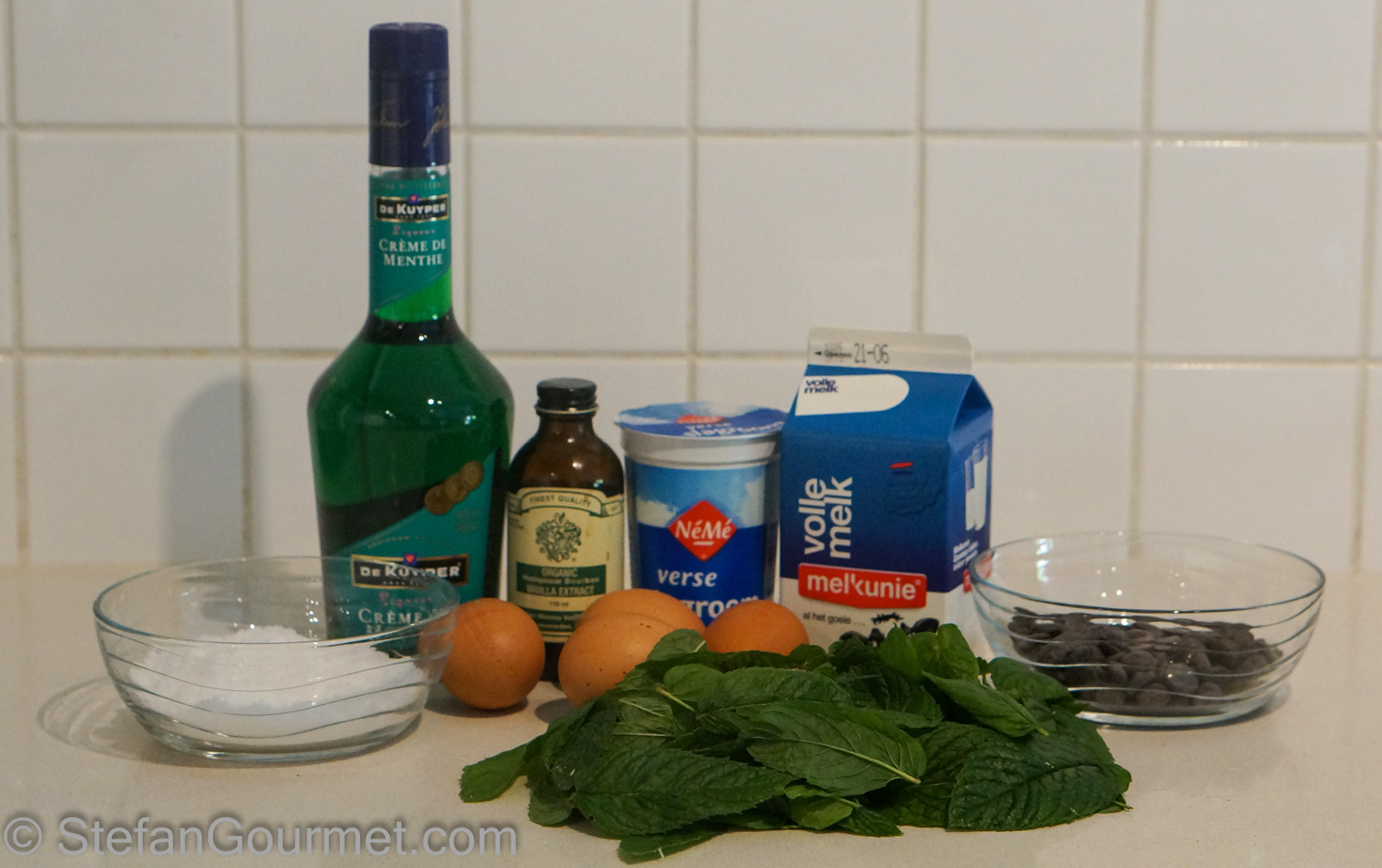 So now we know what to do with the mint and the sage (see Stephan’s post earlier this week). I als grow stevia for which I cannot find recipes, Stephan maybe you can advice? It should be great as substitute for sugar, perhaps even in this mint ice cream.