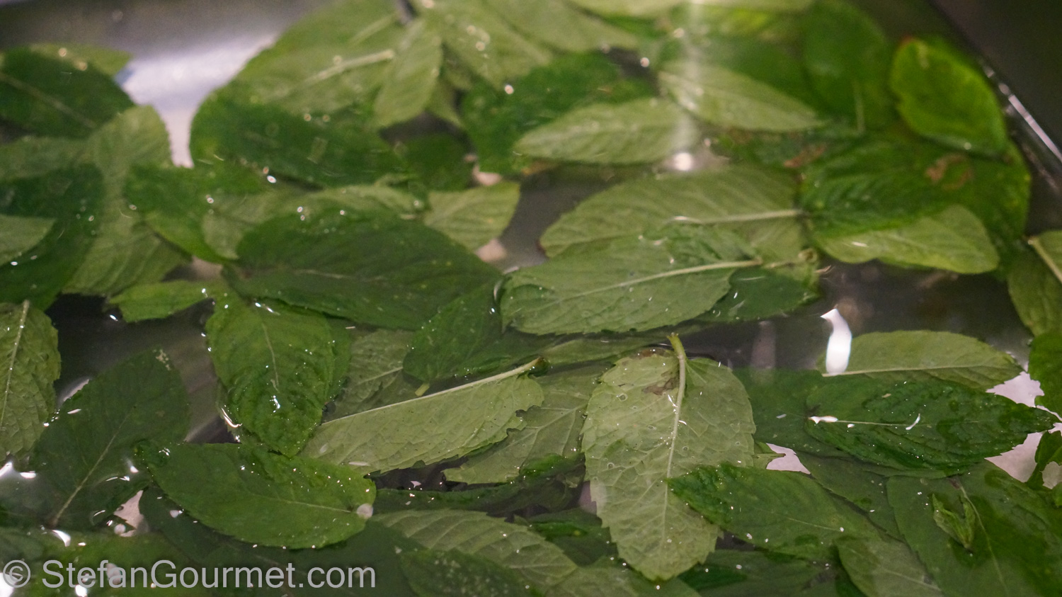 Start by washing the mint leaves and drying them using a salad spinner.